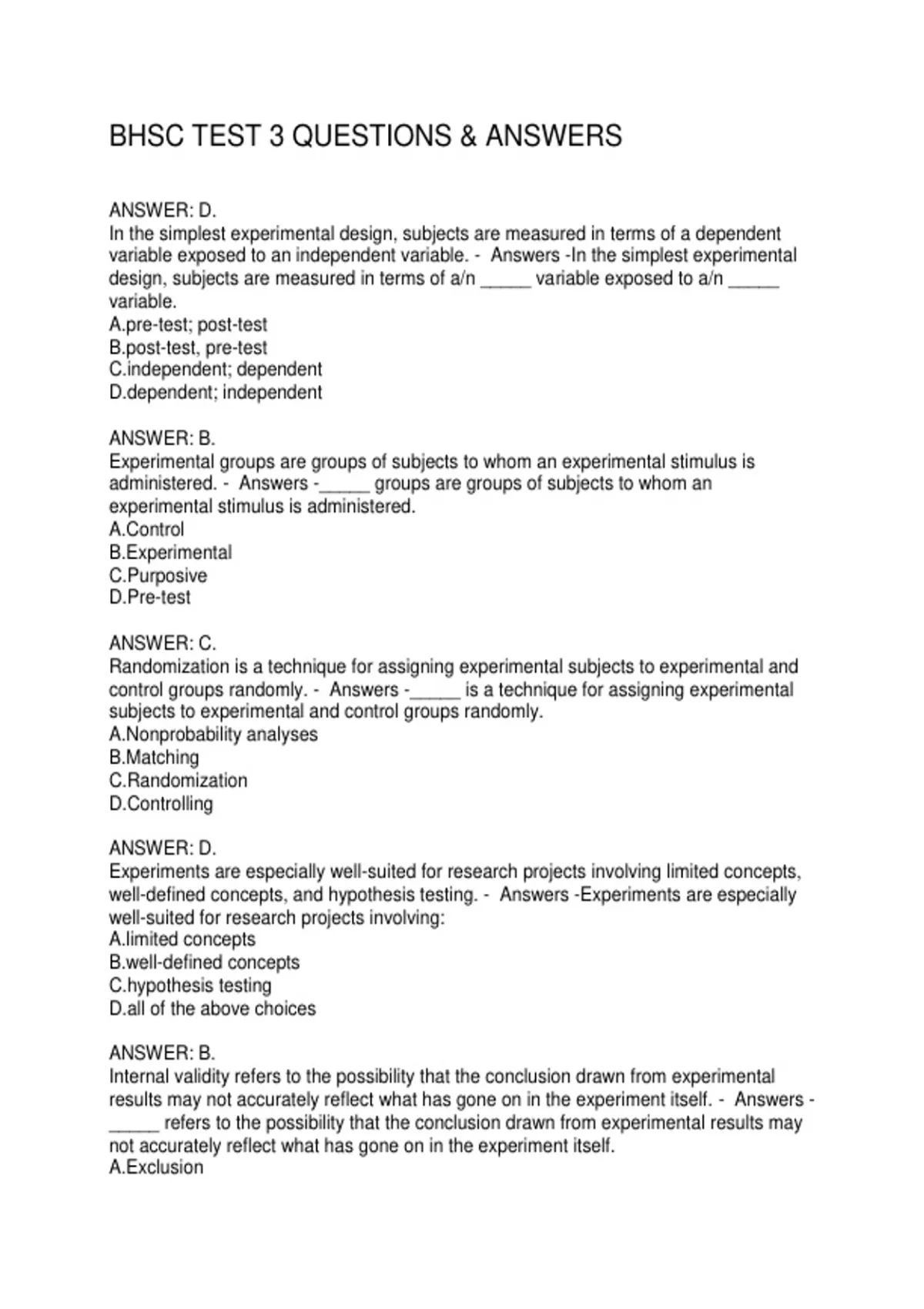 BHSC TEST 3 QUESTIONS & ANSWERS