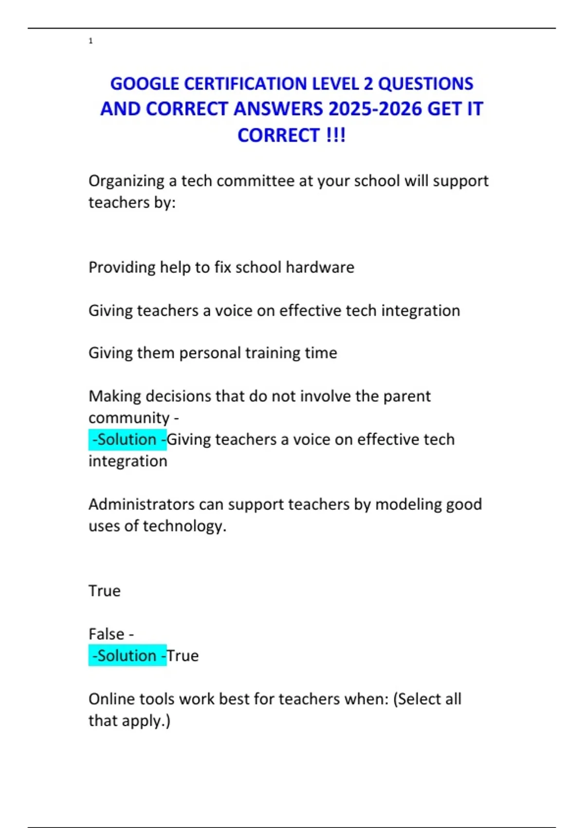 GOOGLE CERTIFICATION LEVEL 2 QUESTIONS AND CORRECT ANSWERS GET IT CORRECT !!!