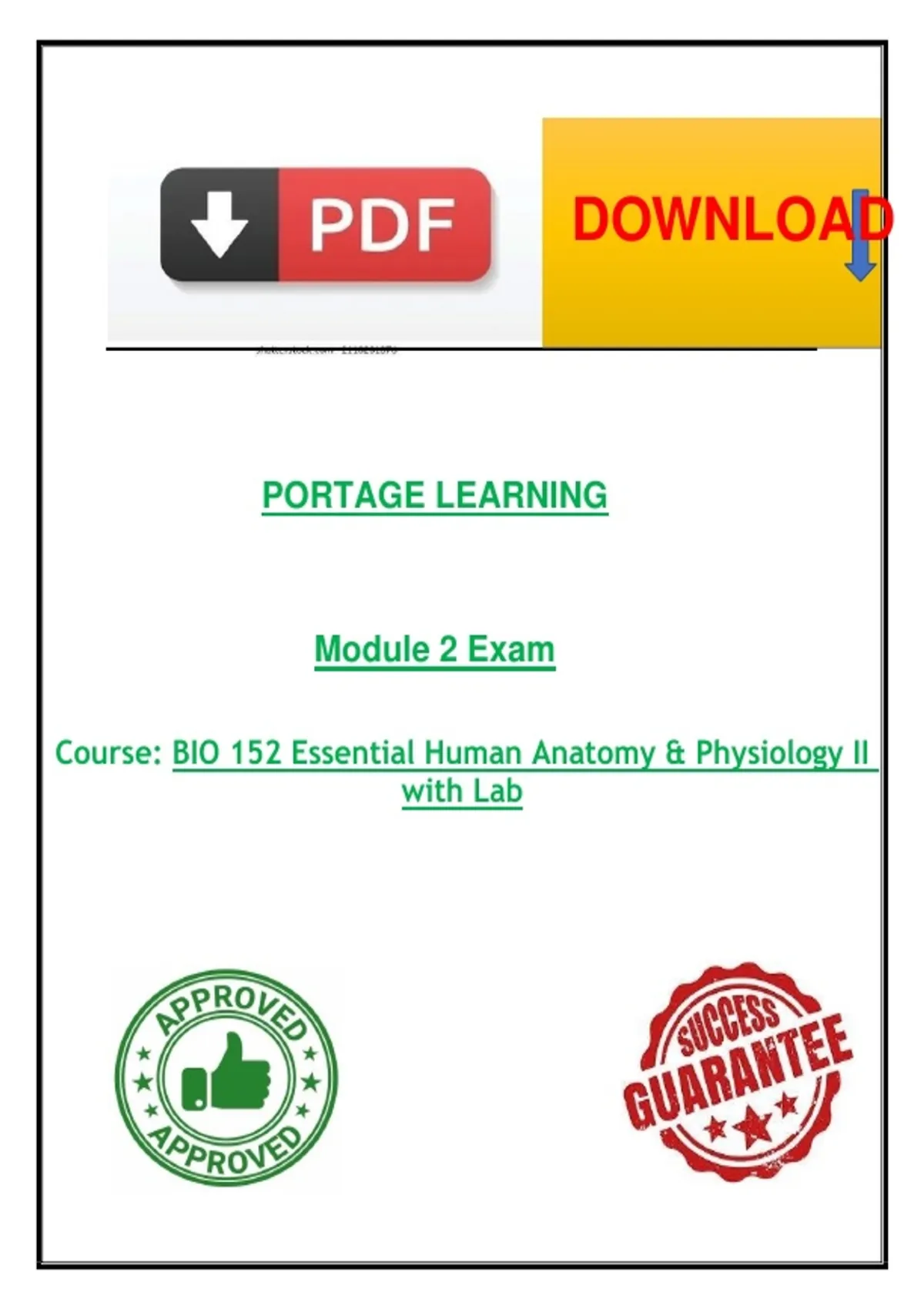 This Module 2 exam for Portage Learning’s BIO 152 course assesses student understanding of key anatomical and physiological concepts introduced in Essential Human Anatomy and Physiology II with Lab. The exam emphasizes functional relationships within human body systems covered in Module 2, integrating theoretical knowledge with laboratory applications relevant to human health and physiological regulation.