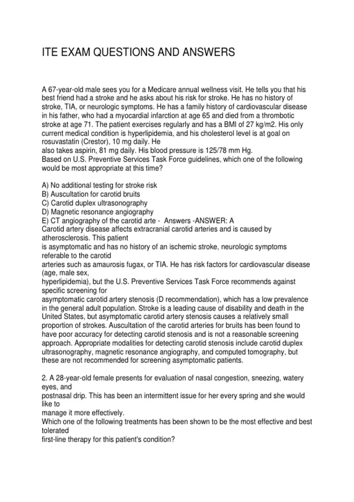E) CT angiography of the carotid arte - Answers -ANSWER: A