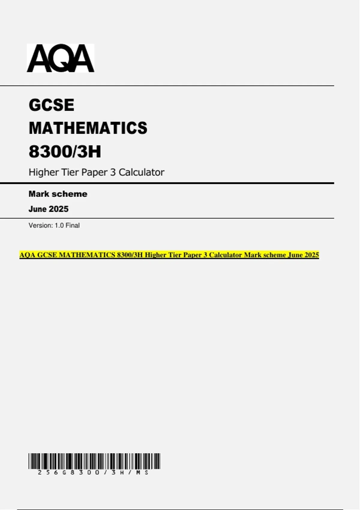 AQA GCSE MATHEMATICS 8300/3H Higher Tier Paper 3 Calculator Mark scheme June 2025