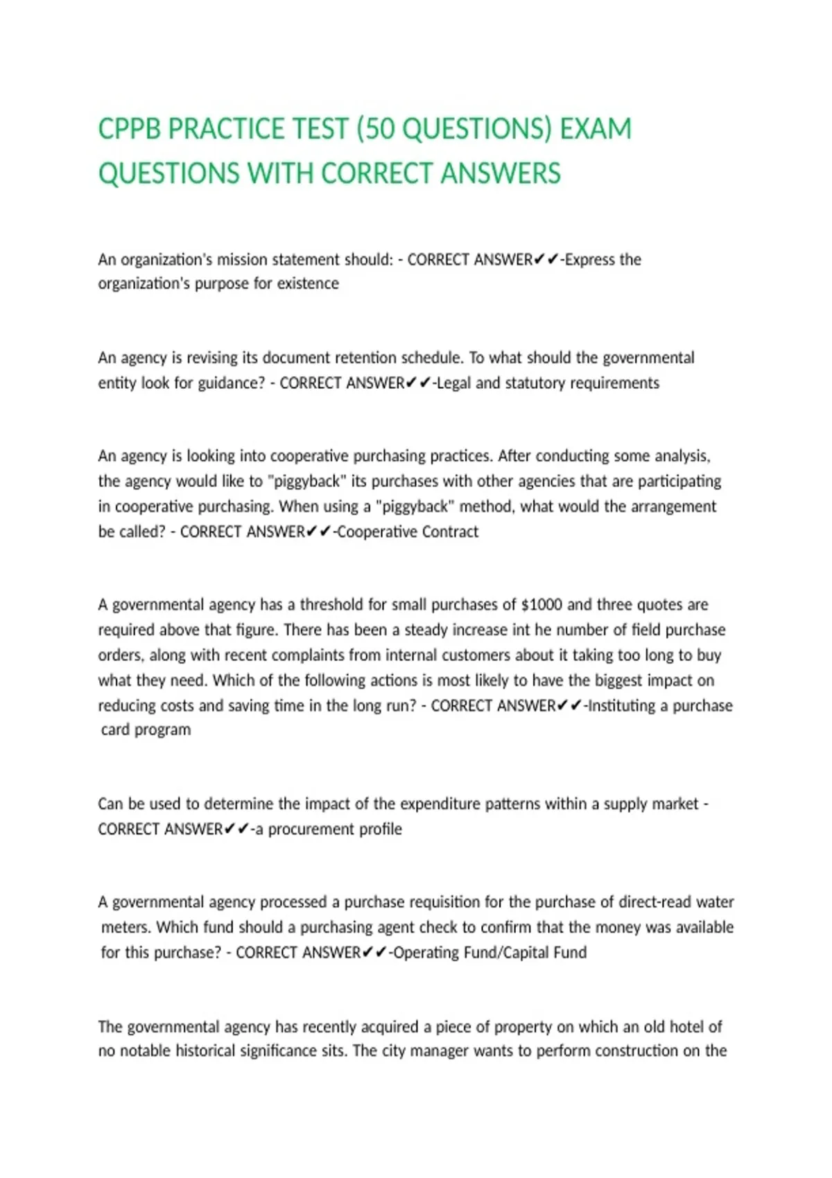 CPPB PRACTICE TEST (50 QUESTIONS) EXAM