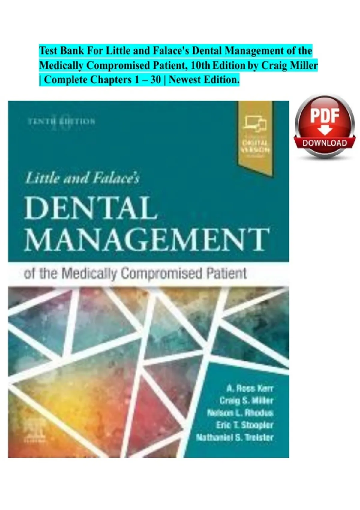 ,Little: Dental Management of the Medically Compromised Patient, 10th Edition Test Bank