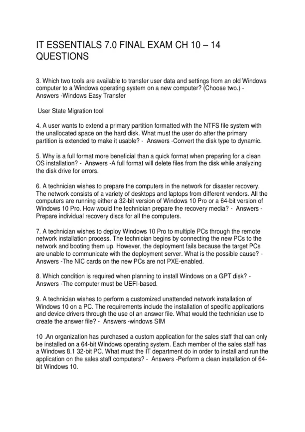 IT ESSENTIALS 7.0 FINAL EXAM CH 10 – 14
