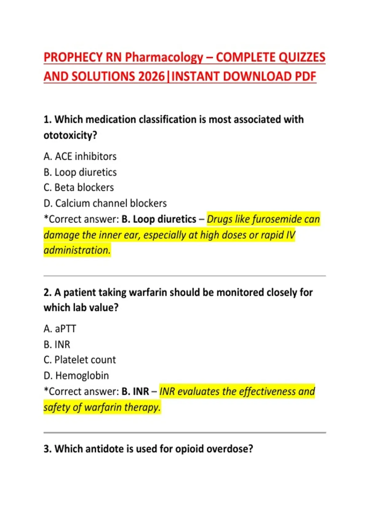 *Correct answer: C. Naloxone – Naloxone rapidly reverses