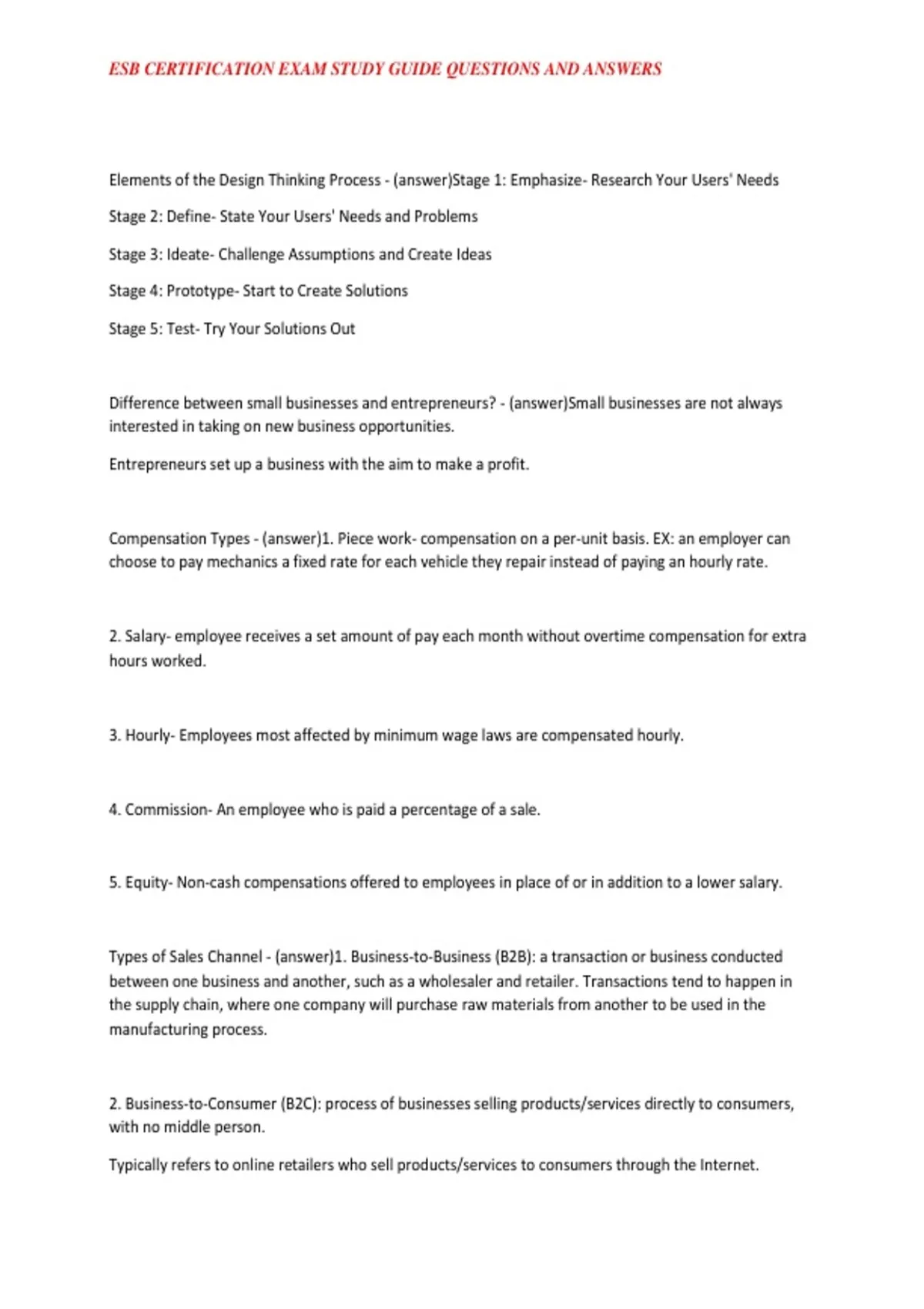 ESB CERTIFICATION EXAM STUDY GUIDE QUESTIONS AND ANSWERS