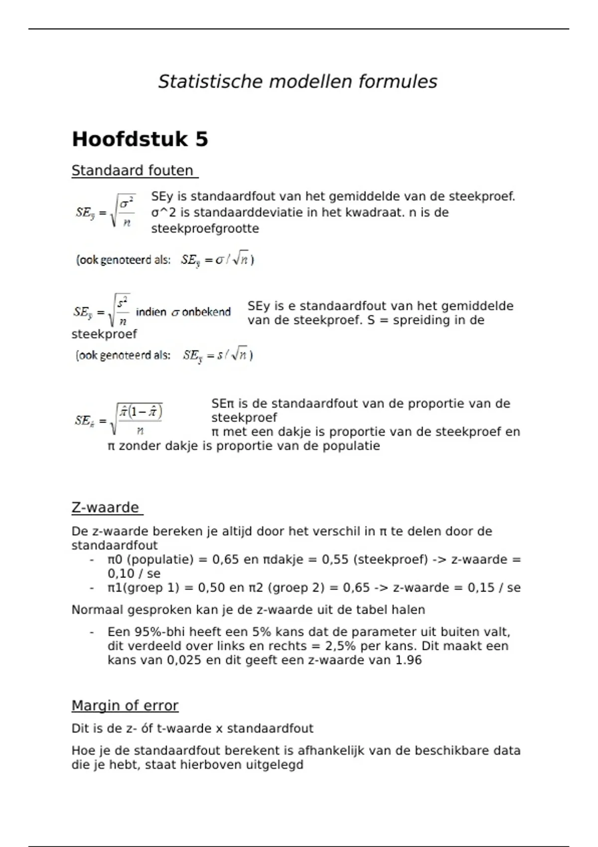 Statistische modellen 1 formules