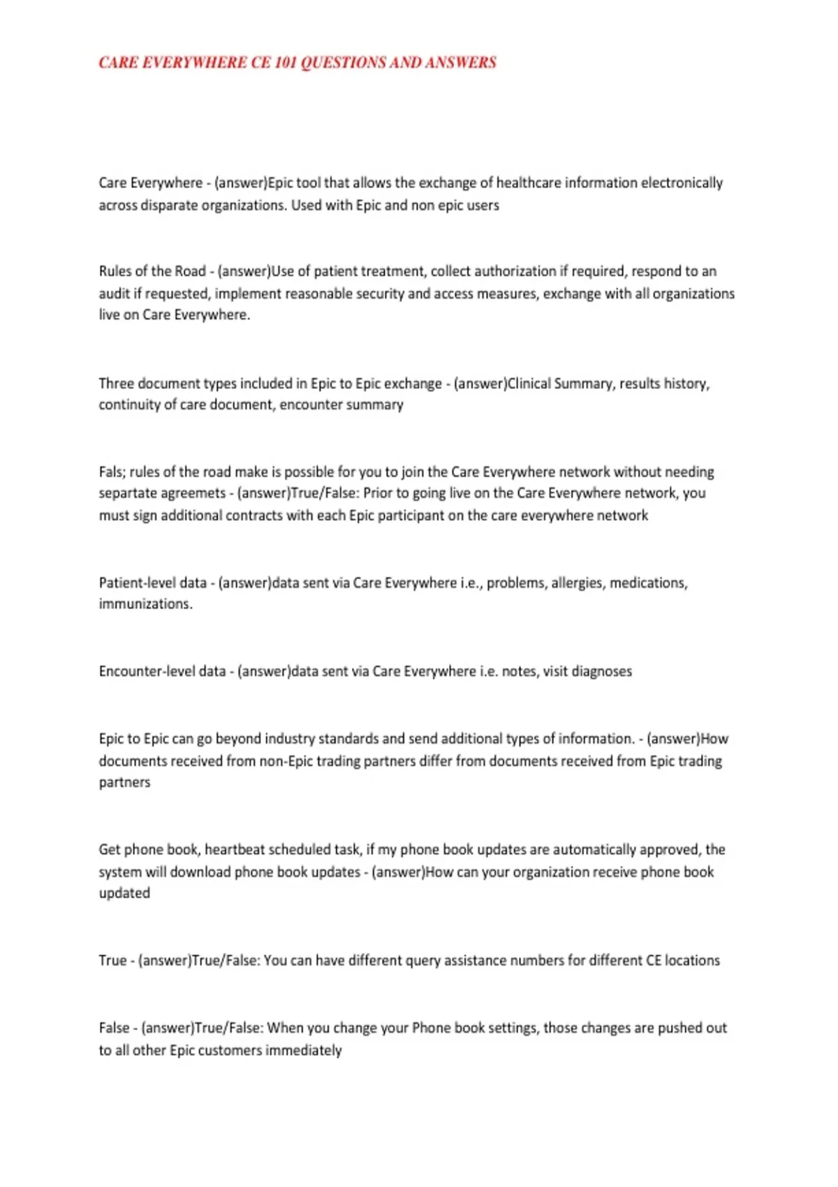 CARE EVERYWHERE CE 101 QUESTIONS AND ANSWERS