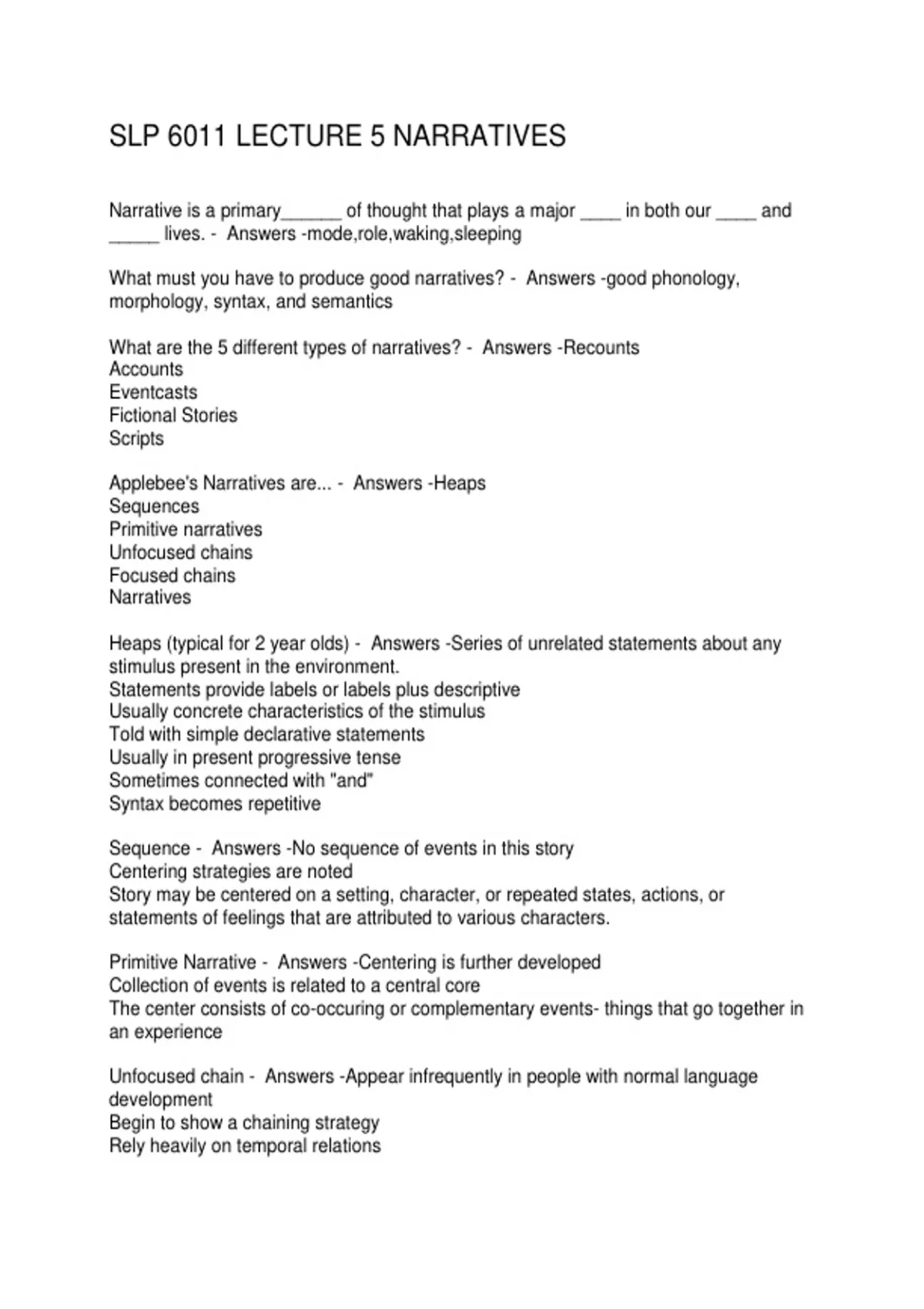 Unfocused chain - Answers -Appear infrequently in people with normal language