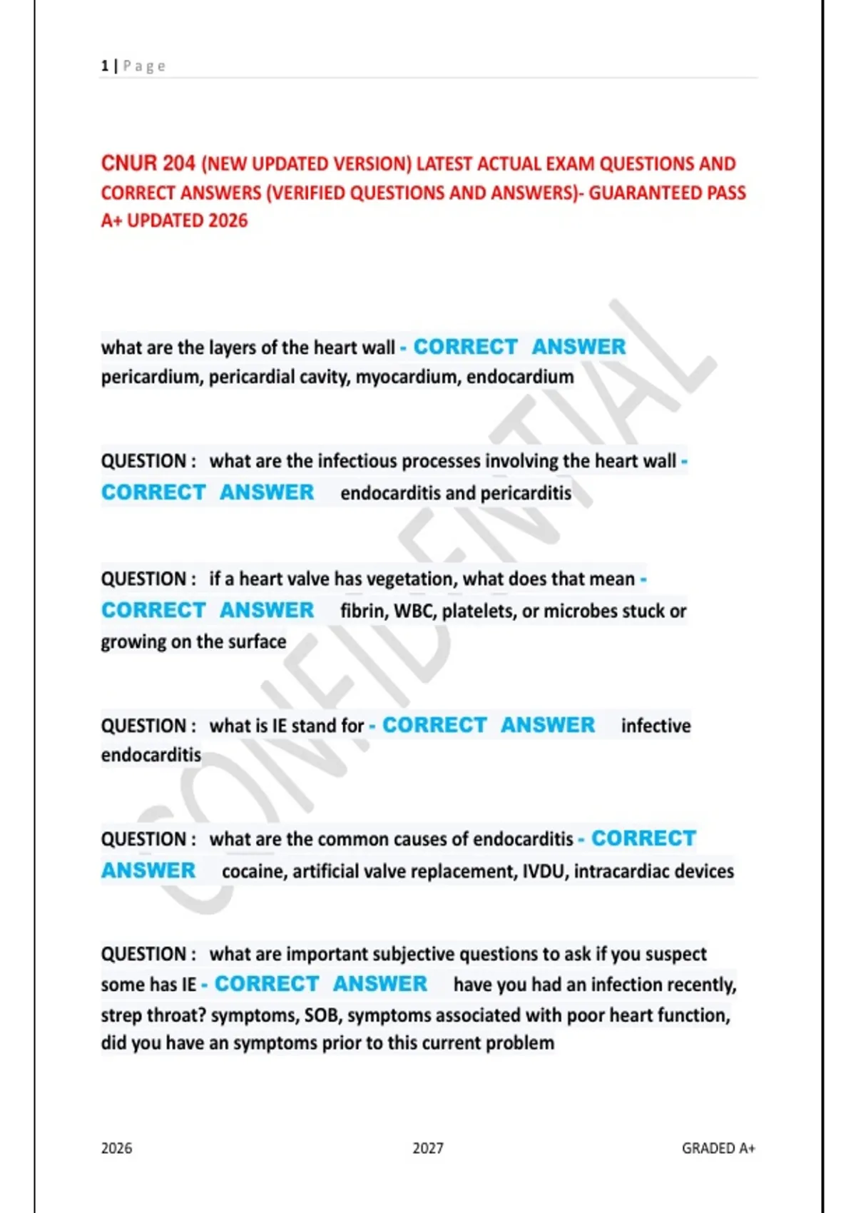 CNUR 204 (NEW UPDATED VERSION) LATEST ACTUAL EXAM QUESTIONS AND