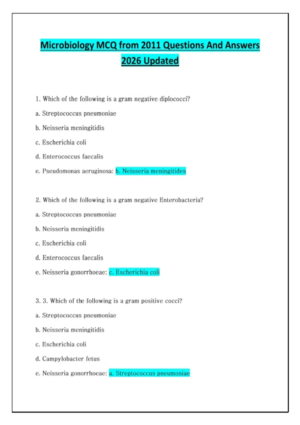 Microbiology MCQ from 2011 Questions And Answers 2026 Updated