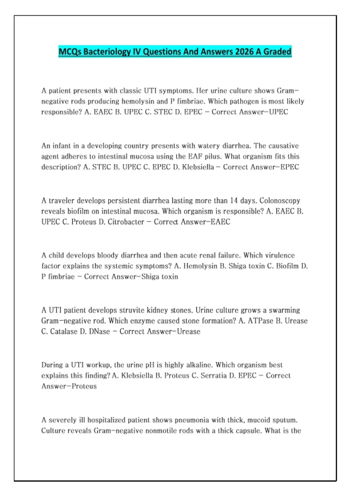 MCQs Bacteriology IV Questions And Answers 2026 A Graded
