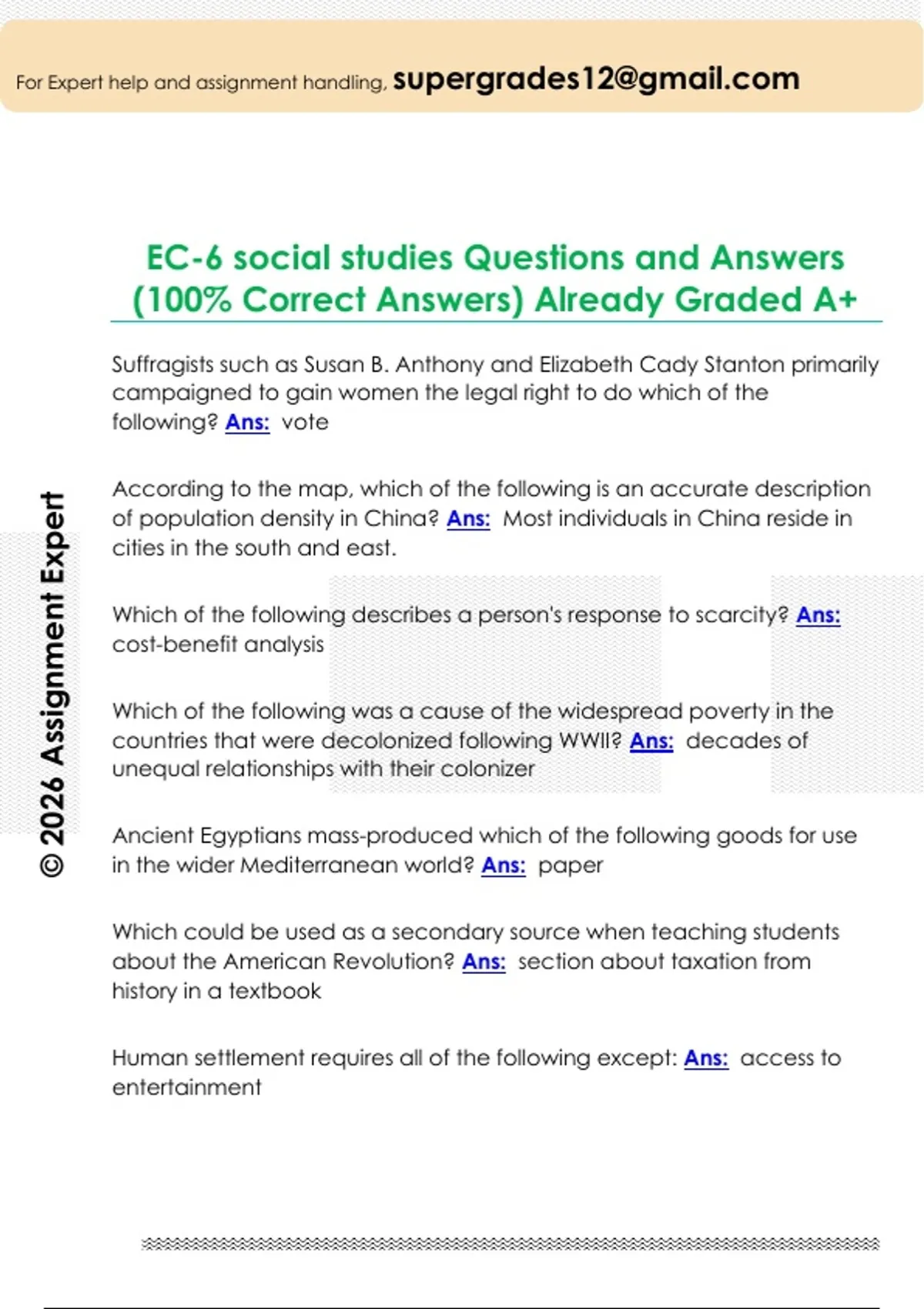 EC-6 social studies Questions and Answers (100% Correct Answers) Already Graded A+