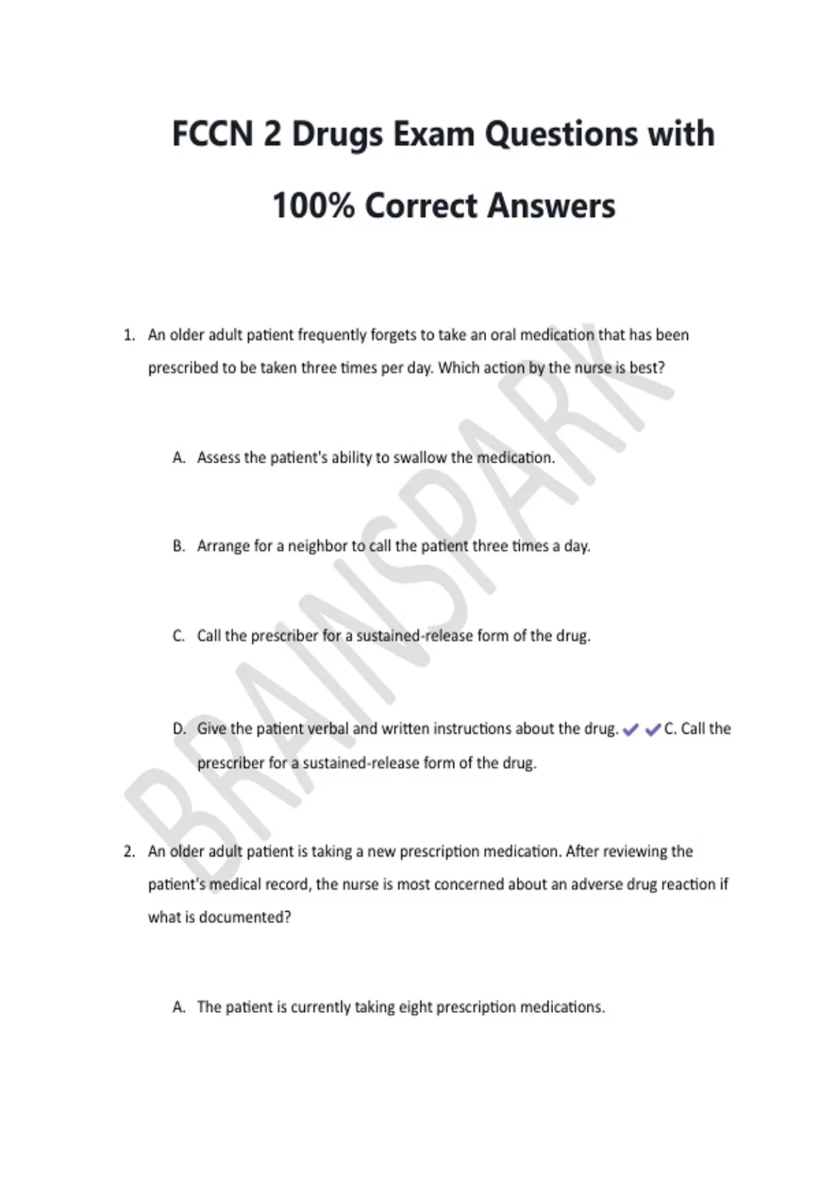2. An older adult patient is taking a new prescription medication. After reviewing the