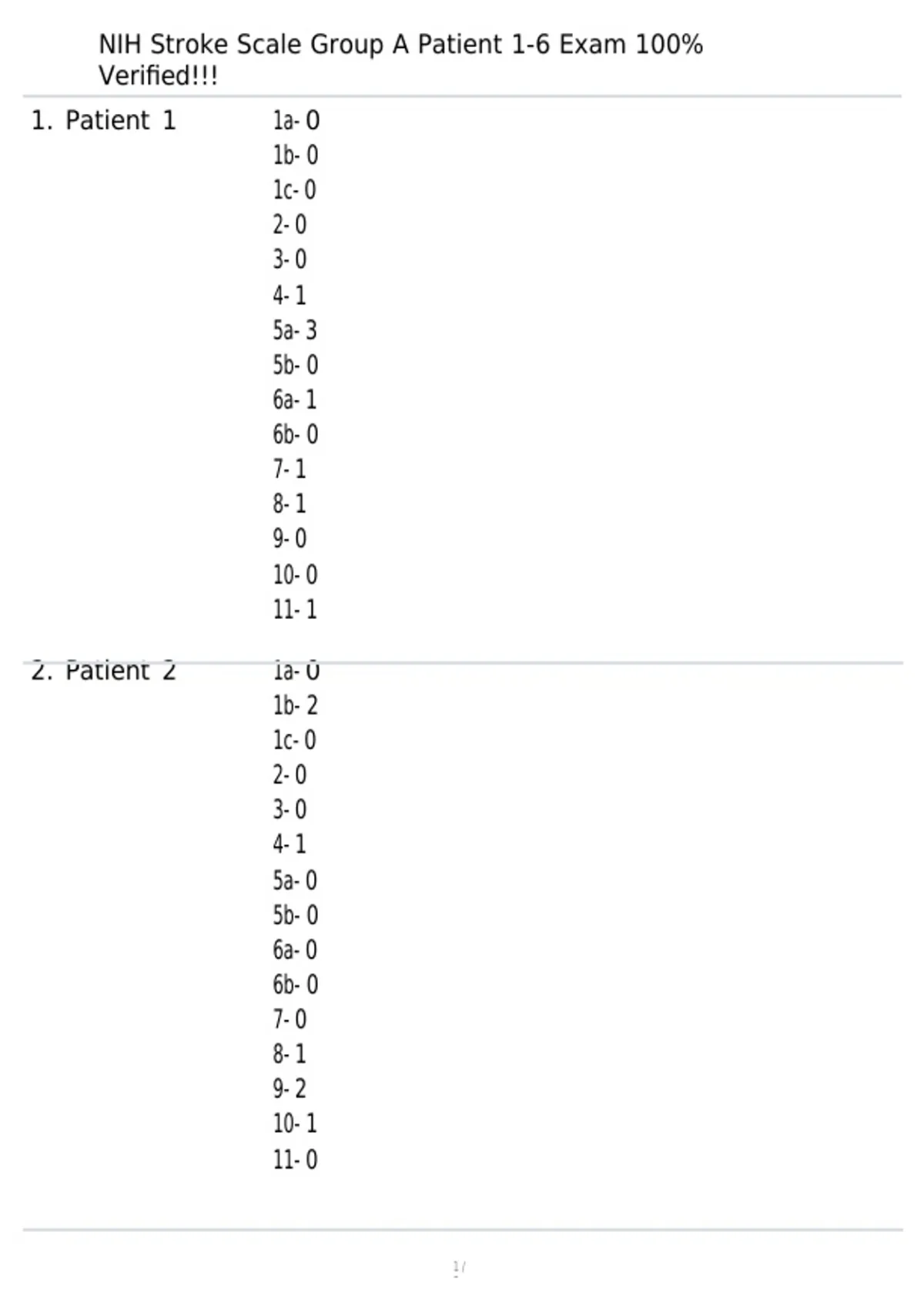 NIH Stroke Scale Group A Patient 1-6 Exam 100% Verified!!!