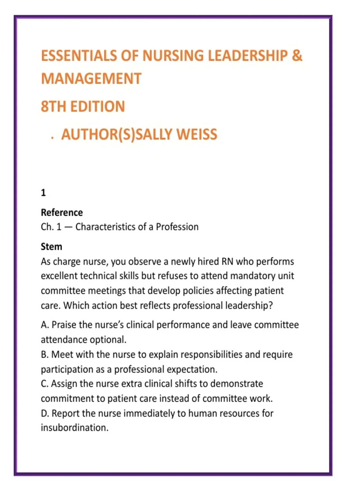 Citation: Weiss, S. (2024). Essentials of Nursing Leadership &