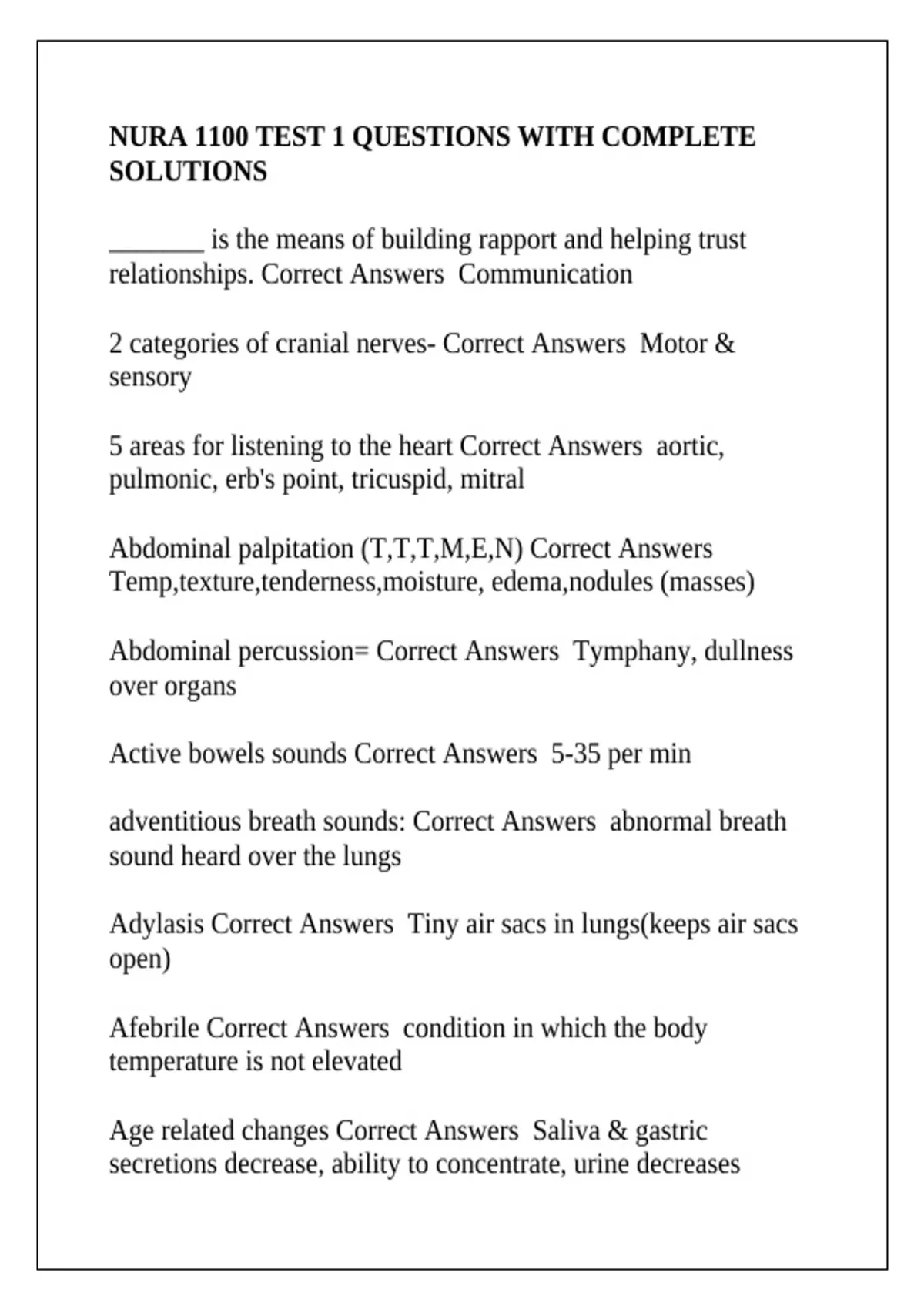 comprehensive health assessment: Correct Answers detailed