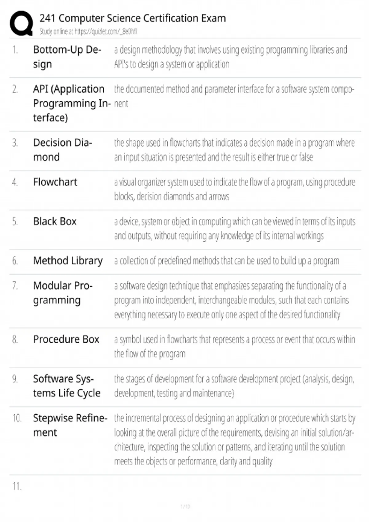 Computer Science 241 Certification / Comprehensive Exam / Study Guide / New Version 2025 / Score 100%