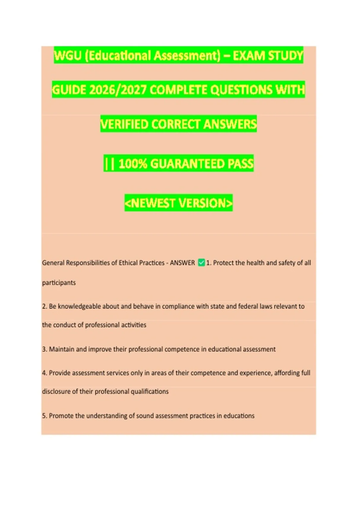 WGU (Educational Assessment) – EXAM STUDY GUIDE 2026/2027 COMPLETE QUESTIONS WITH VERIFIED CORRECT ANSWERS || 100% GUARANTEED PASS <NEWEST VERSION>
