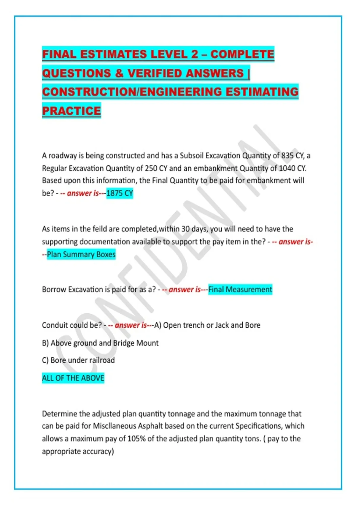 Borrow Excavation is paid for as a? - -- answer is---Final Measurement