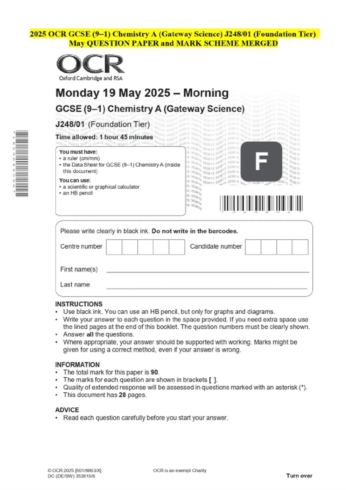 2025 OCR GCSE (9–1) Chemistry A (Gateway Science) J248/01 (Foundation Tier) May QUESTION PAPER and MARK SCHEME MERGED