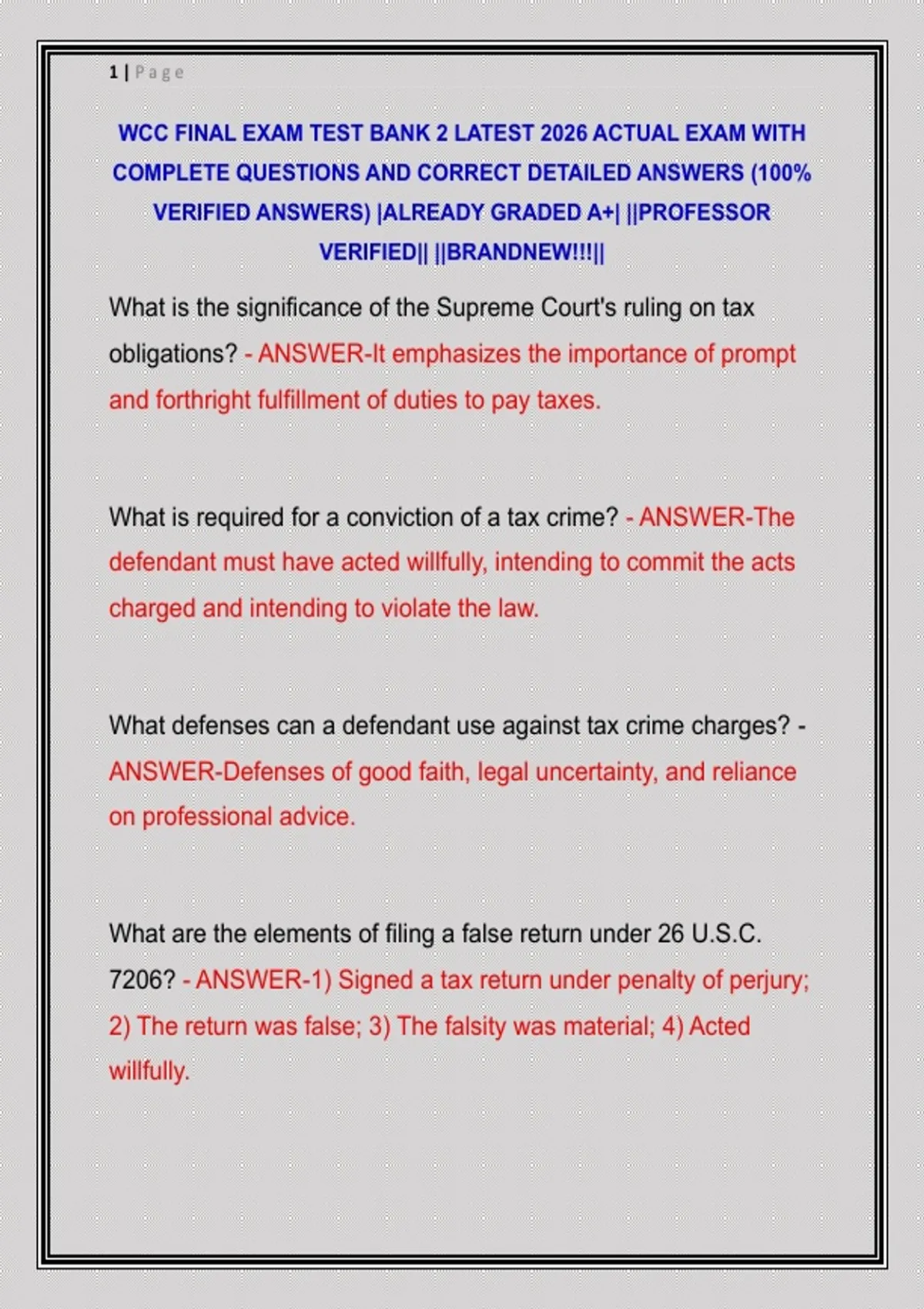 WCC FINAL EXAM TEST BANK 2 LATEST 2026 ACTUAL EXAM WITH