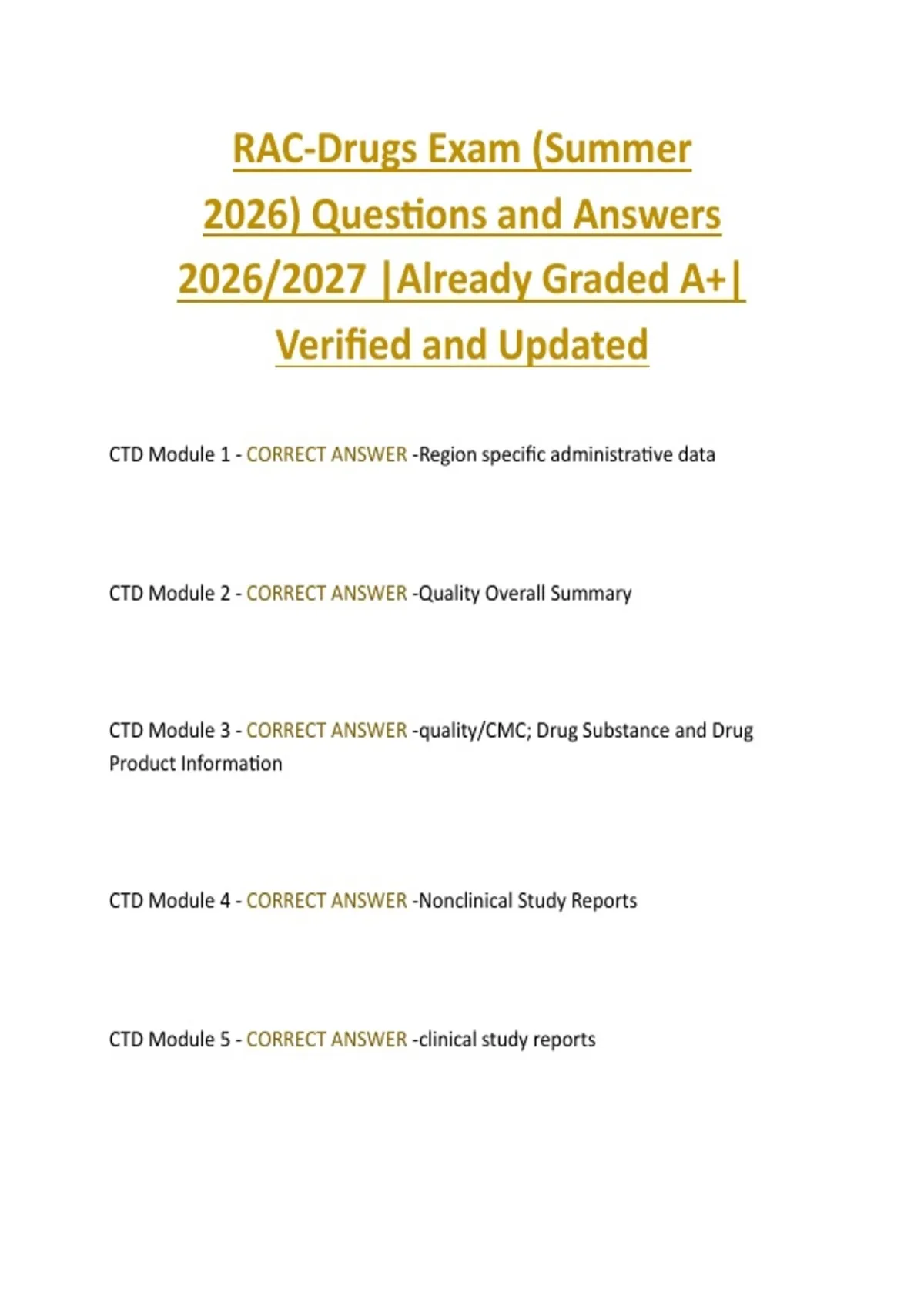 CTD Module 2 - CORRECT ANSWER -Quality Overall Summary