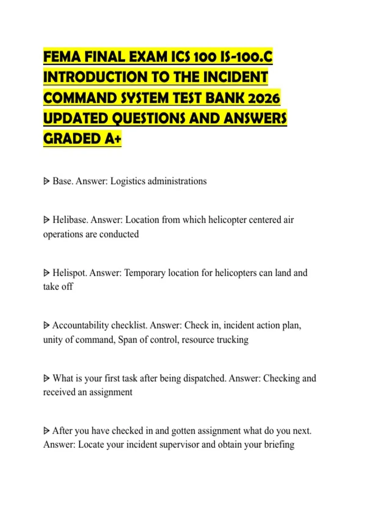 Answer: Locate your incident supervisor and obtain your briefing