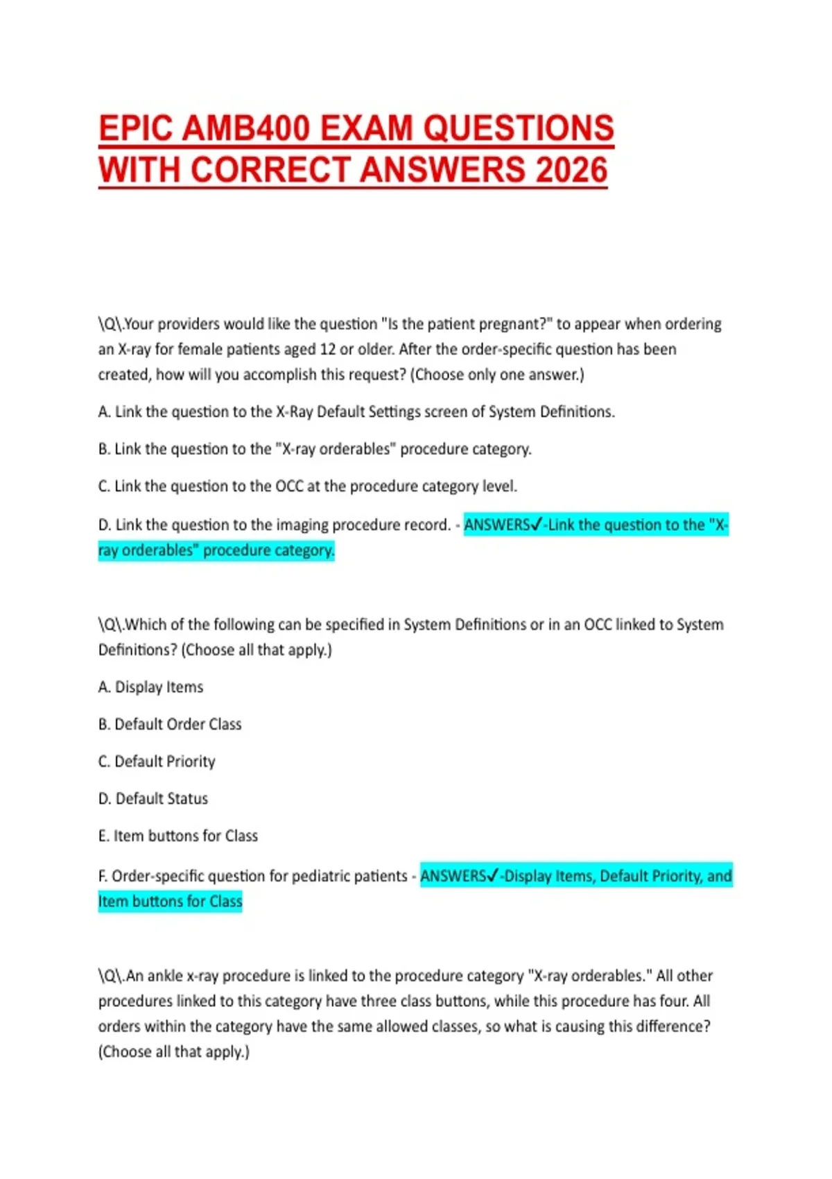 \Q\.An ankle x-ray procedure is linked to the procedure category "X-ray orderables." All other