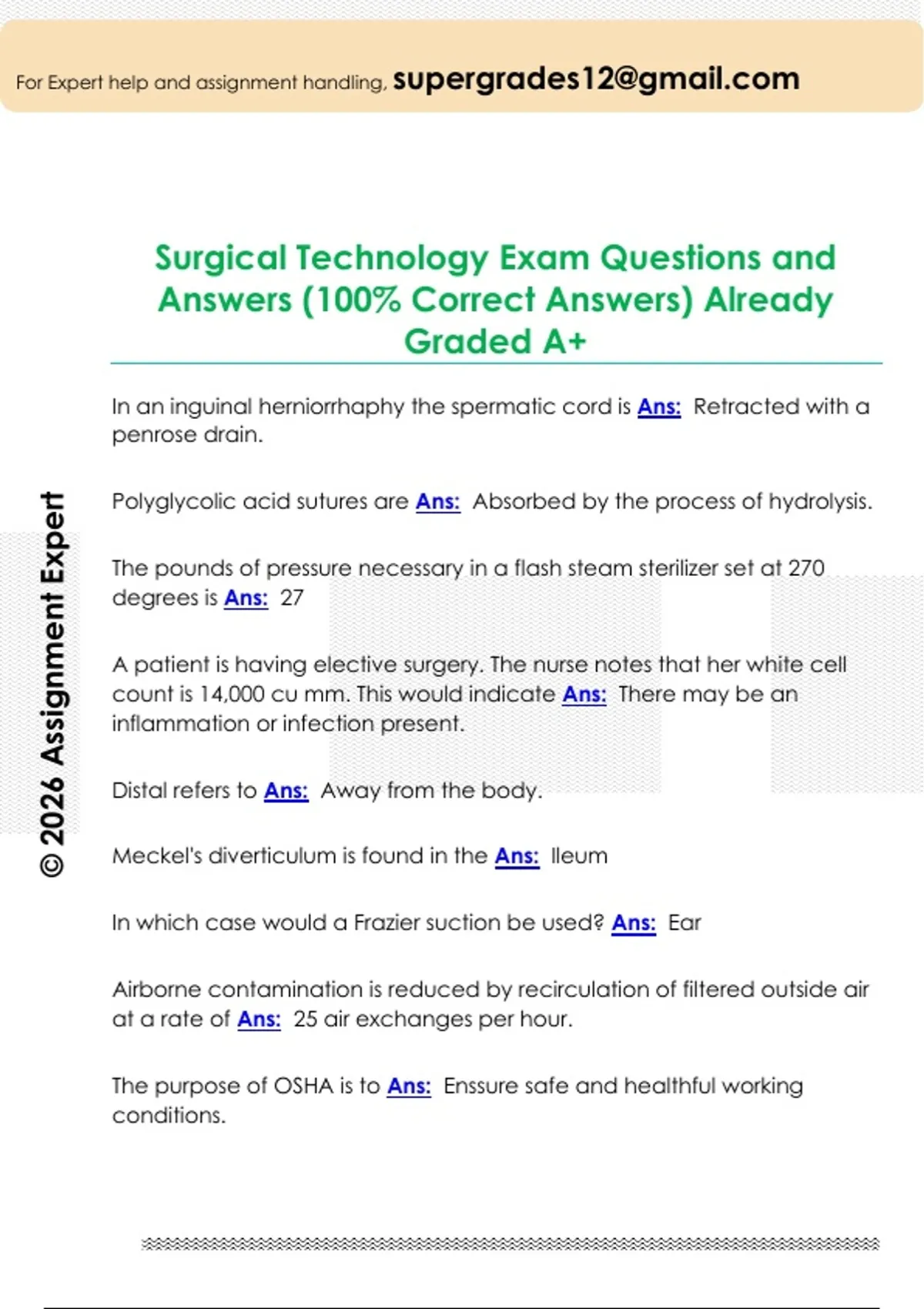 Surgical Technology Exam Questions and