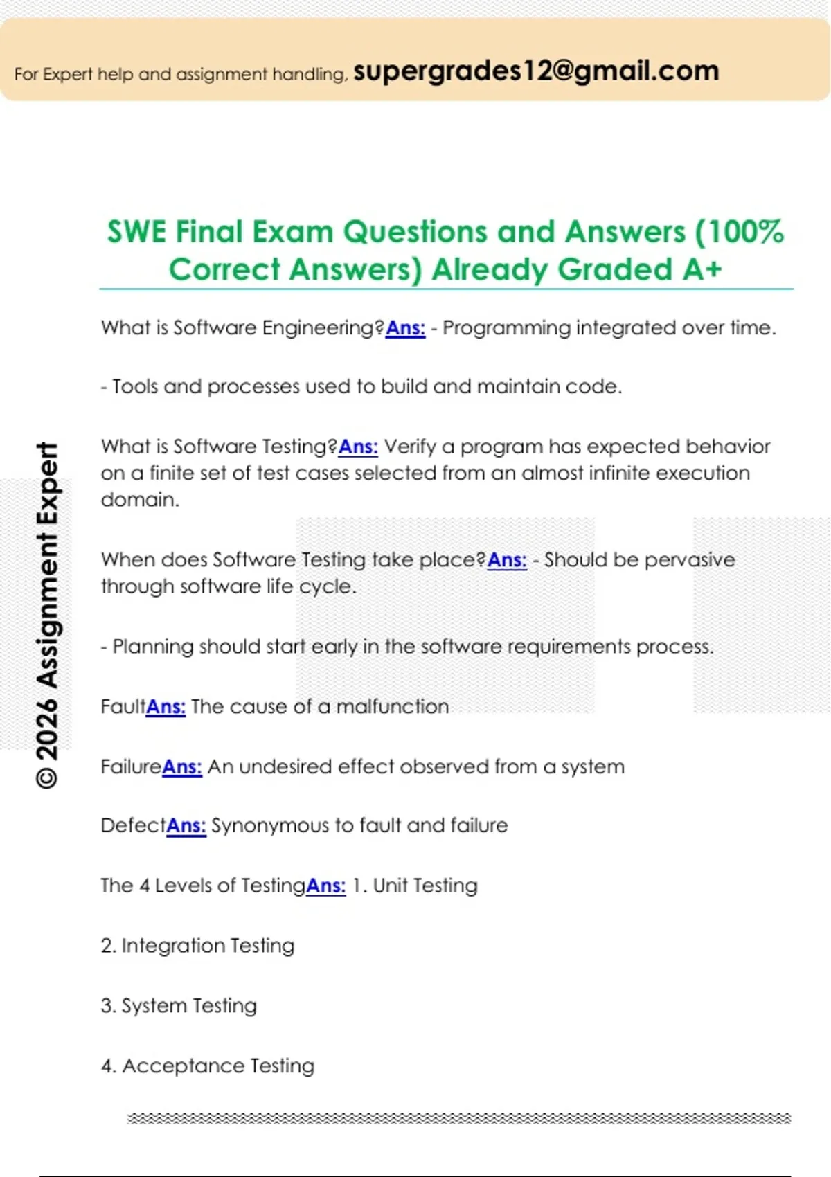 SWE Final Exam Questions and Answers (100%