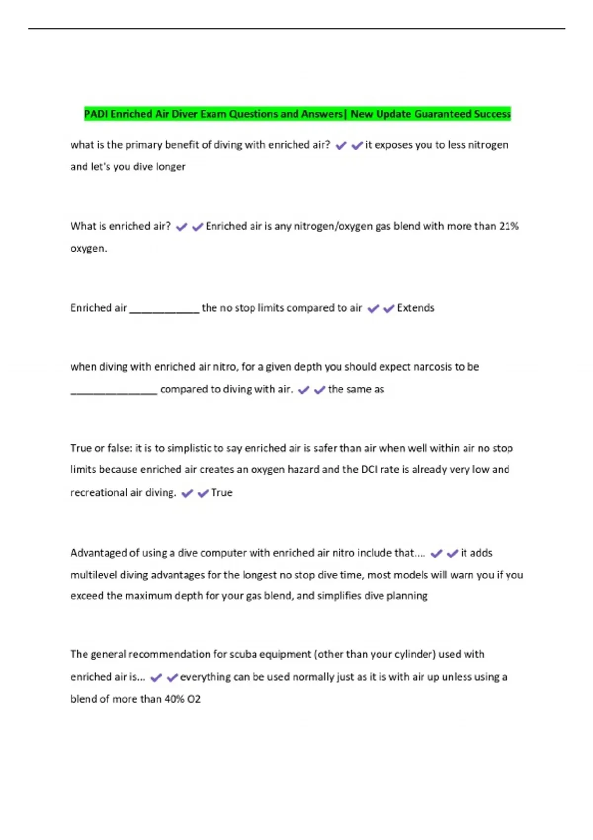 PADI Enriched Air Diver Exam Questions and Answers| New Update Guaranteed Success