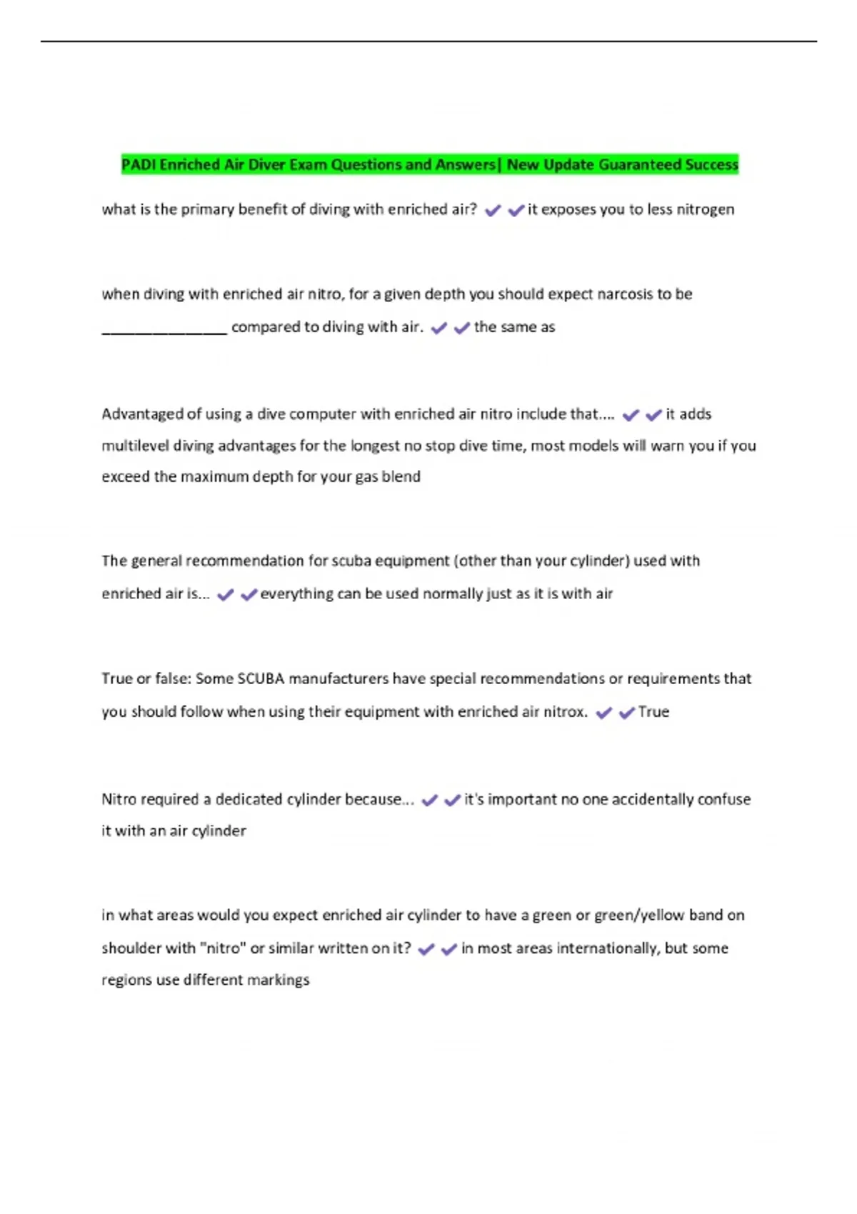 PADI Enriched Air Diver Exam Questions and Answers| New Update Guaranteed Success