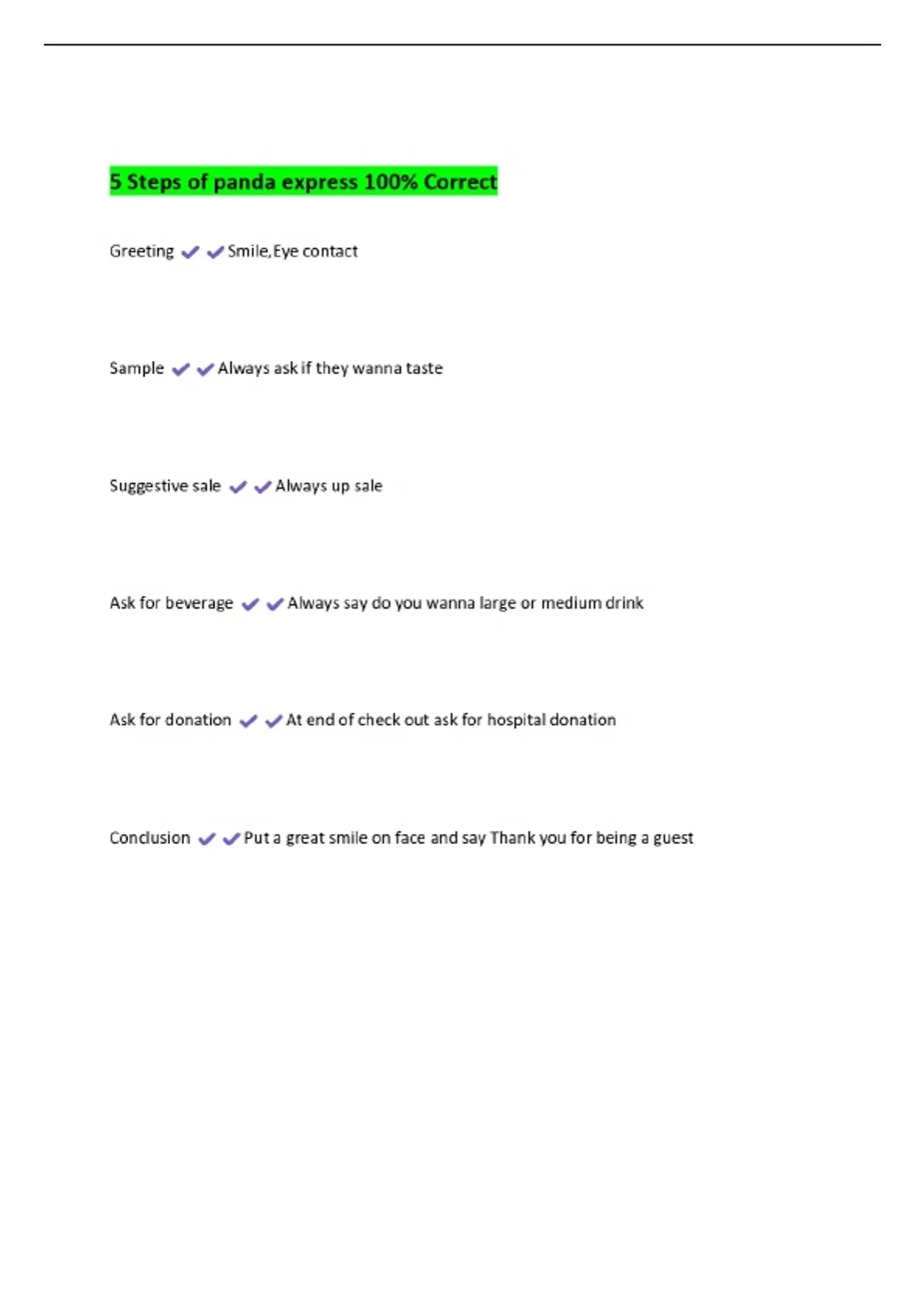 5 steps of panda express 100 correct