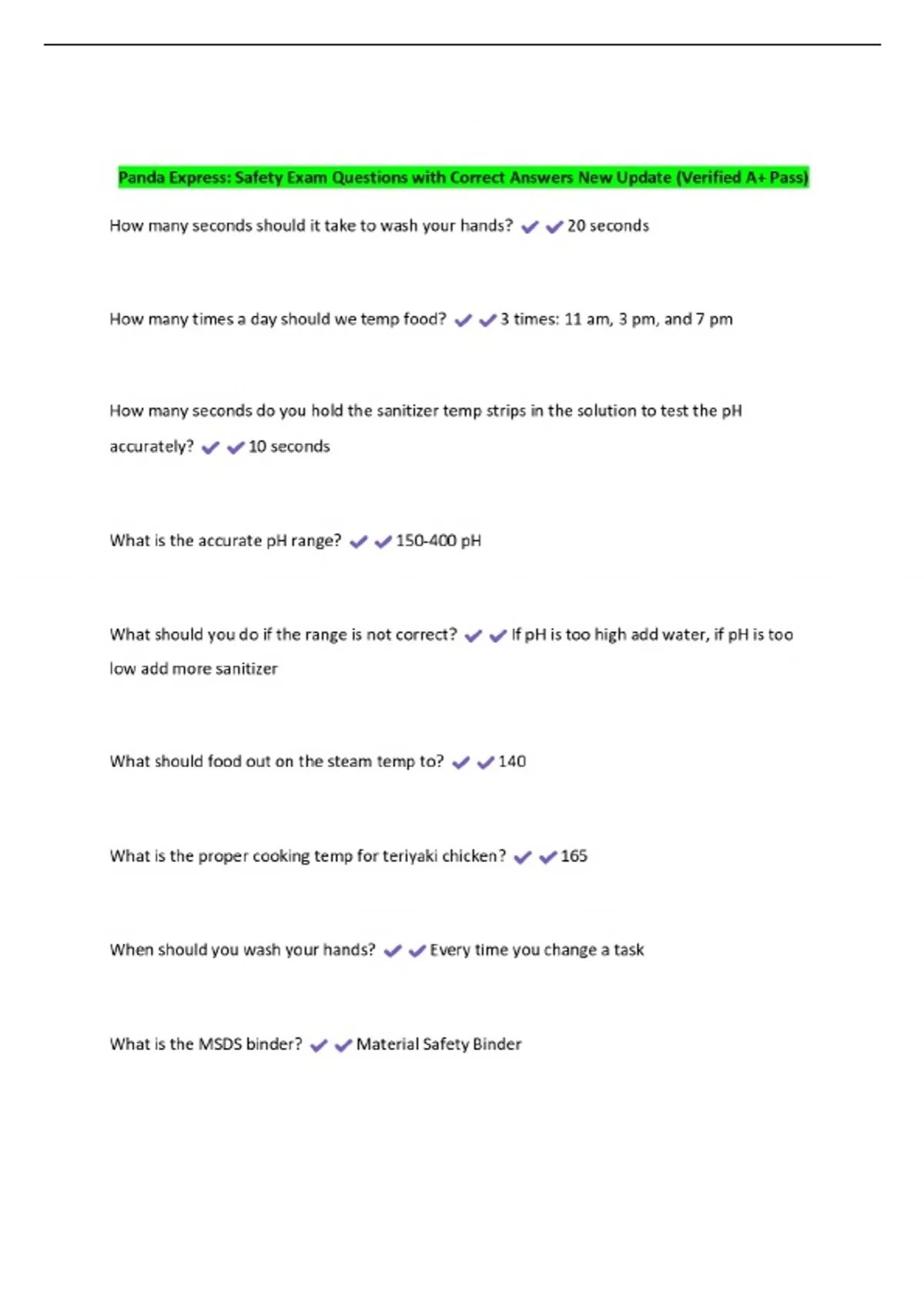 Panda Express: Safety Exam Questions with Correct Answers New Update (Verified A+ Pass)
