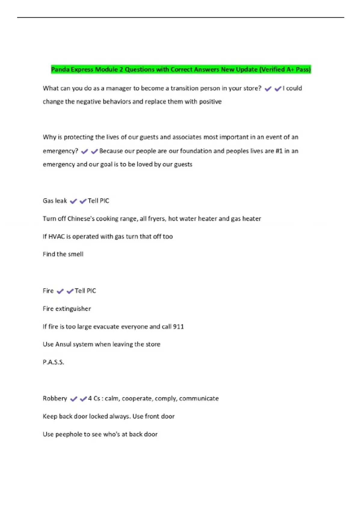 Panda Express Module 2 Questions with Correct Answers New Update (Verified A+ Pass)