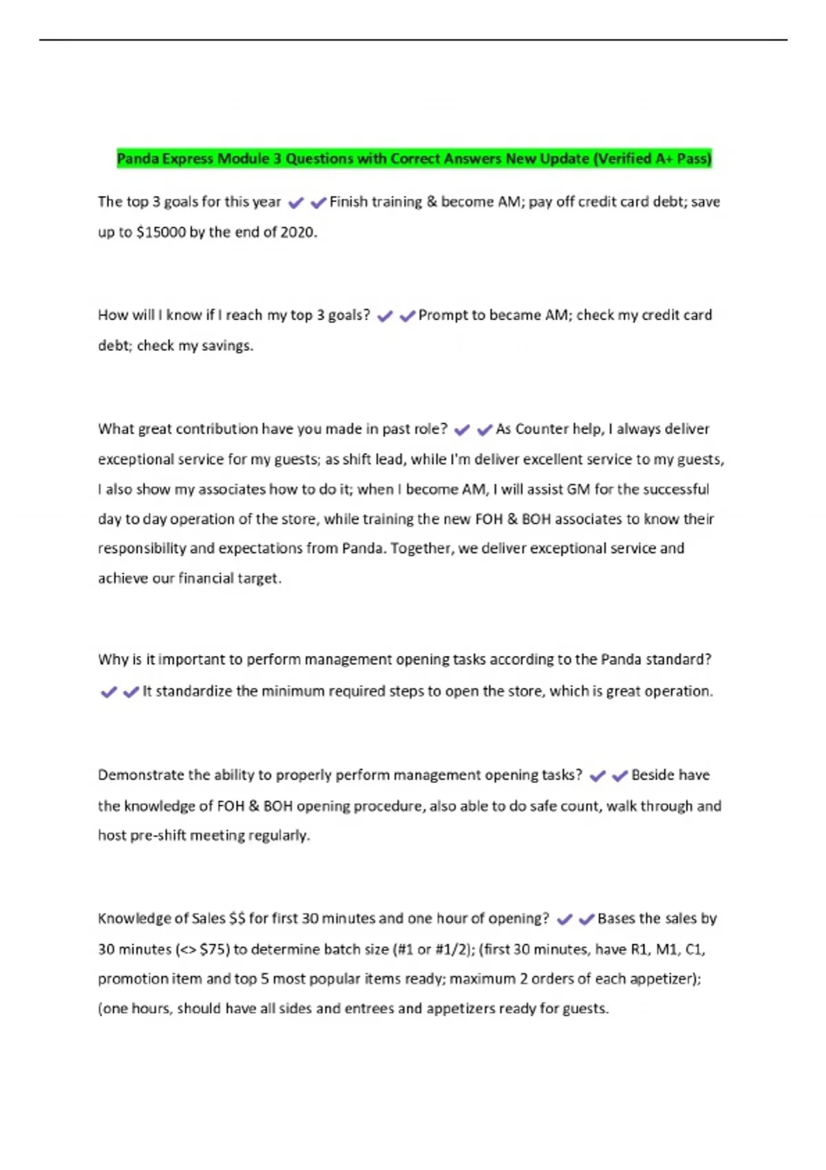 Panda Express Module 3 Questions with Correct Answers New Update (Verified A+ Pass)