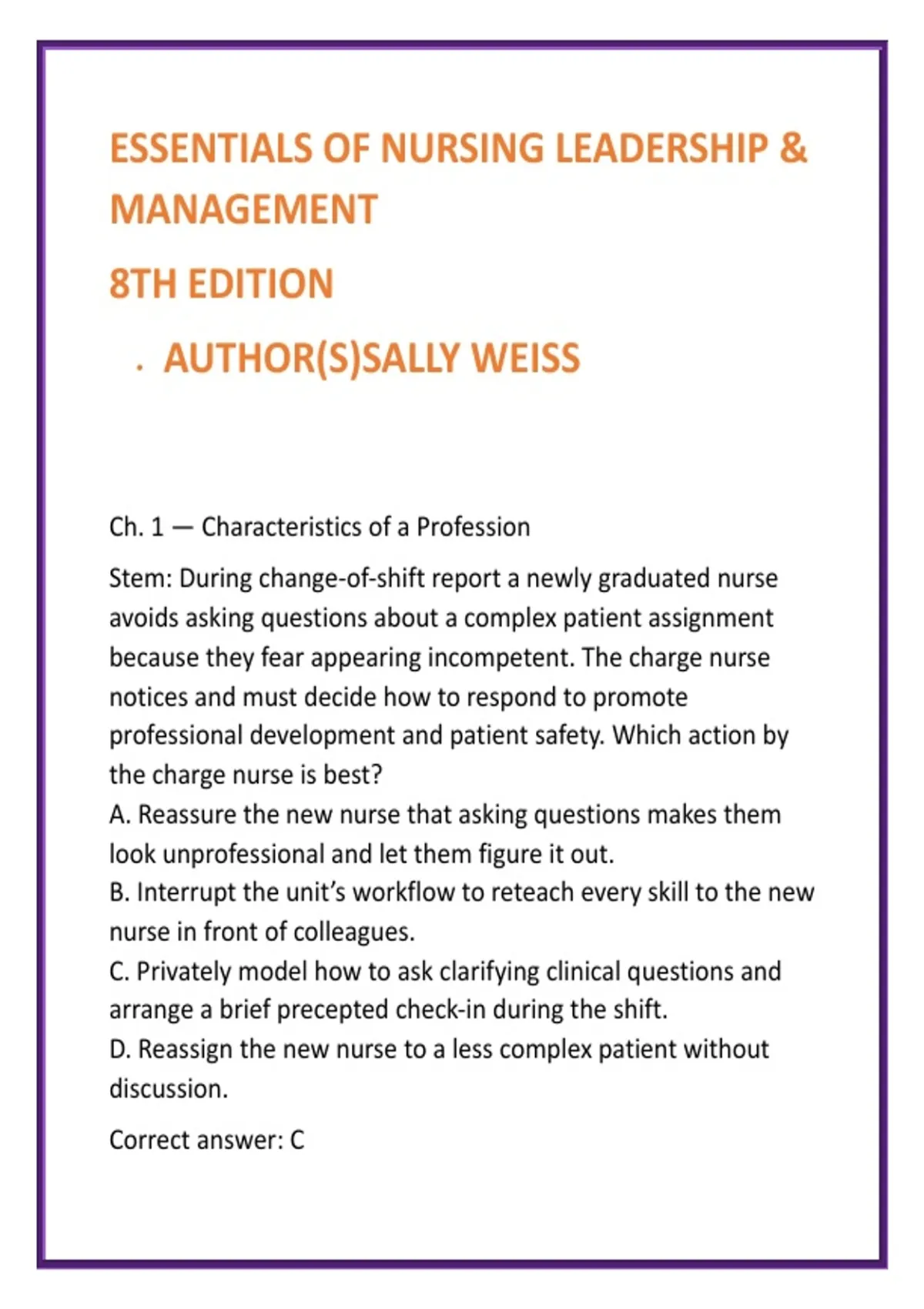 Citation: Weiss, S. (2024). Essentials of Nursing Leadership &