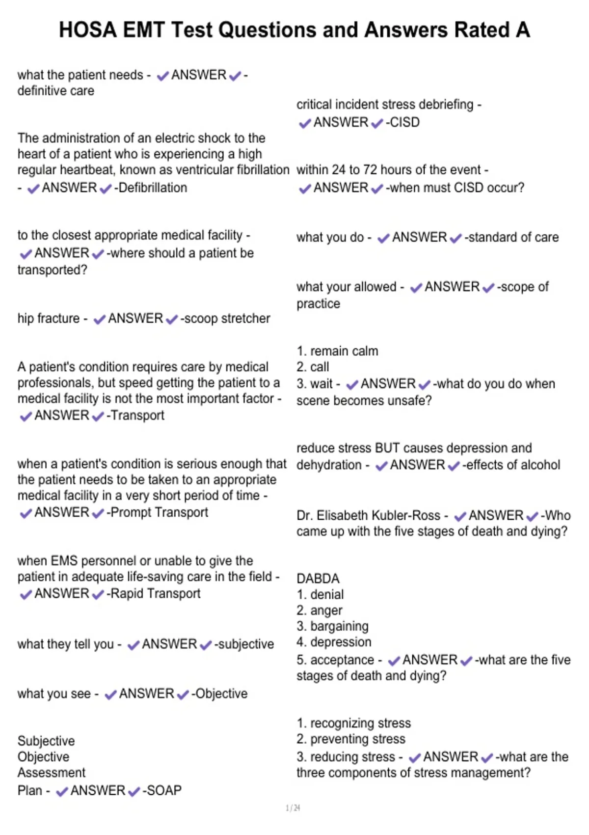 , HOSA EMT Test Questions and Answers Rated A