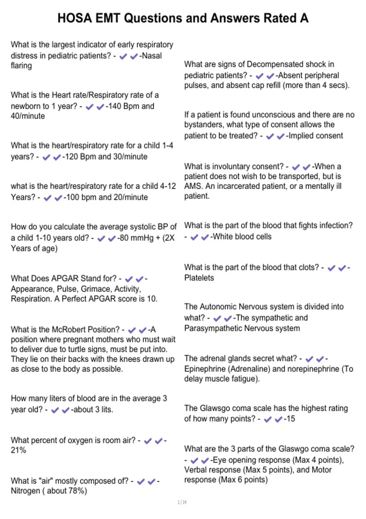 , HOSA EMT Questions and Answers Rated A