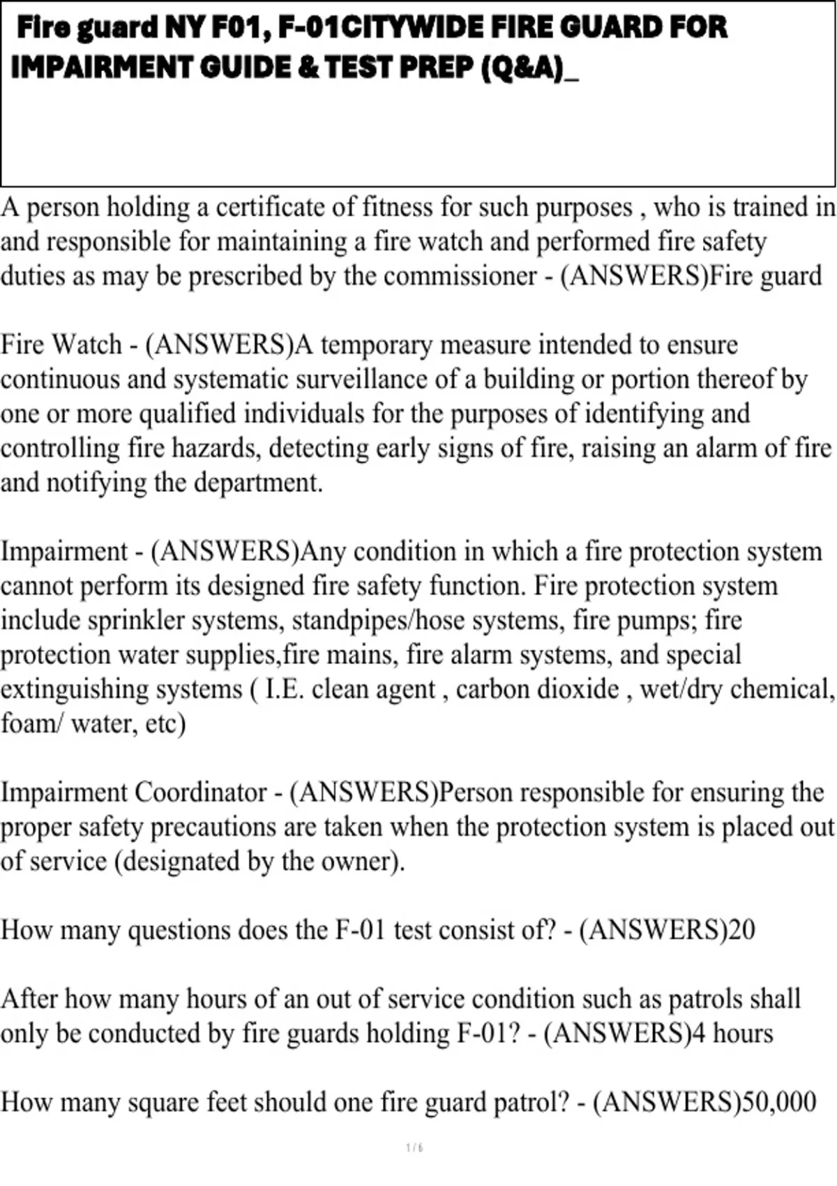 , Fire guard NY F01, F-01CITYWIDE FIRE GUARD FOR