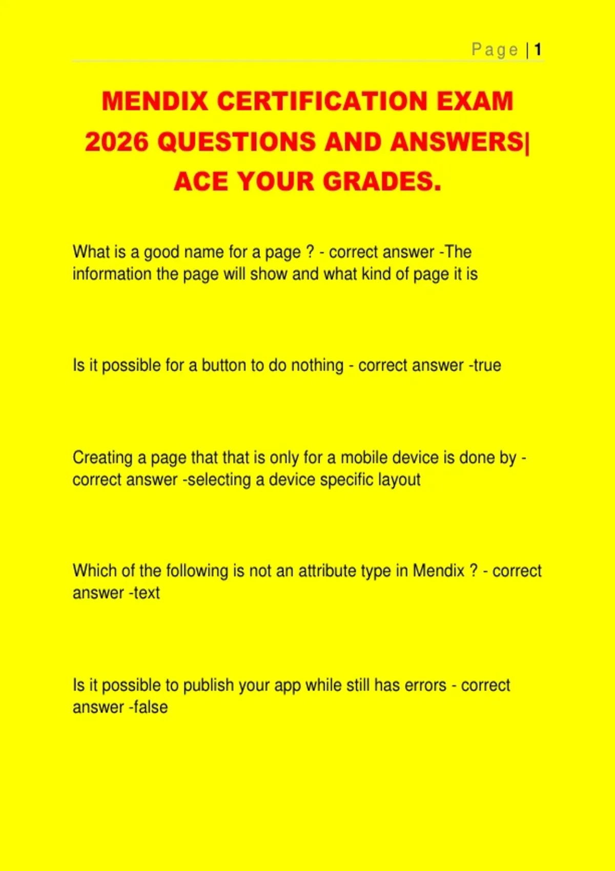 MENDIX CERTIFICATION EXAM 2026 QUESTIONS AND ANSWERS| ACE YOUR GRADES.