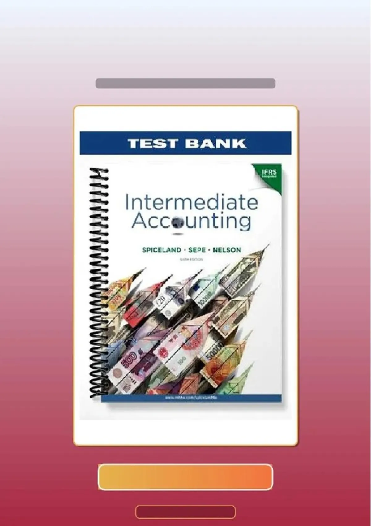 A comprehensive test bank companion to Intermediate Accounting, 7th Edition by Spiceland, Sepe, and Nelson. Includes multiple-choice, true/false, and short-answer questions aligned with chapter learning objectives, designed to assess comprehension of intermediate accounting principles, financial statement elements, financial reporting standards, and problem-solving skills. Useful for instructors preparing exams or students for practice and self-assessment.