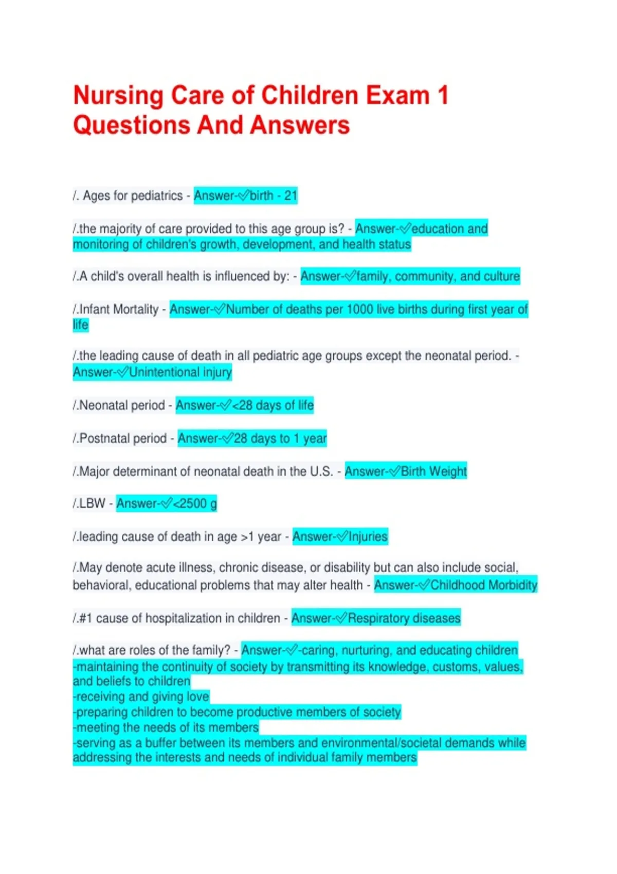 /. Ages for pediatrics - Answer-✅birth - 21