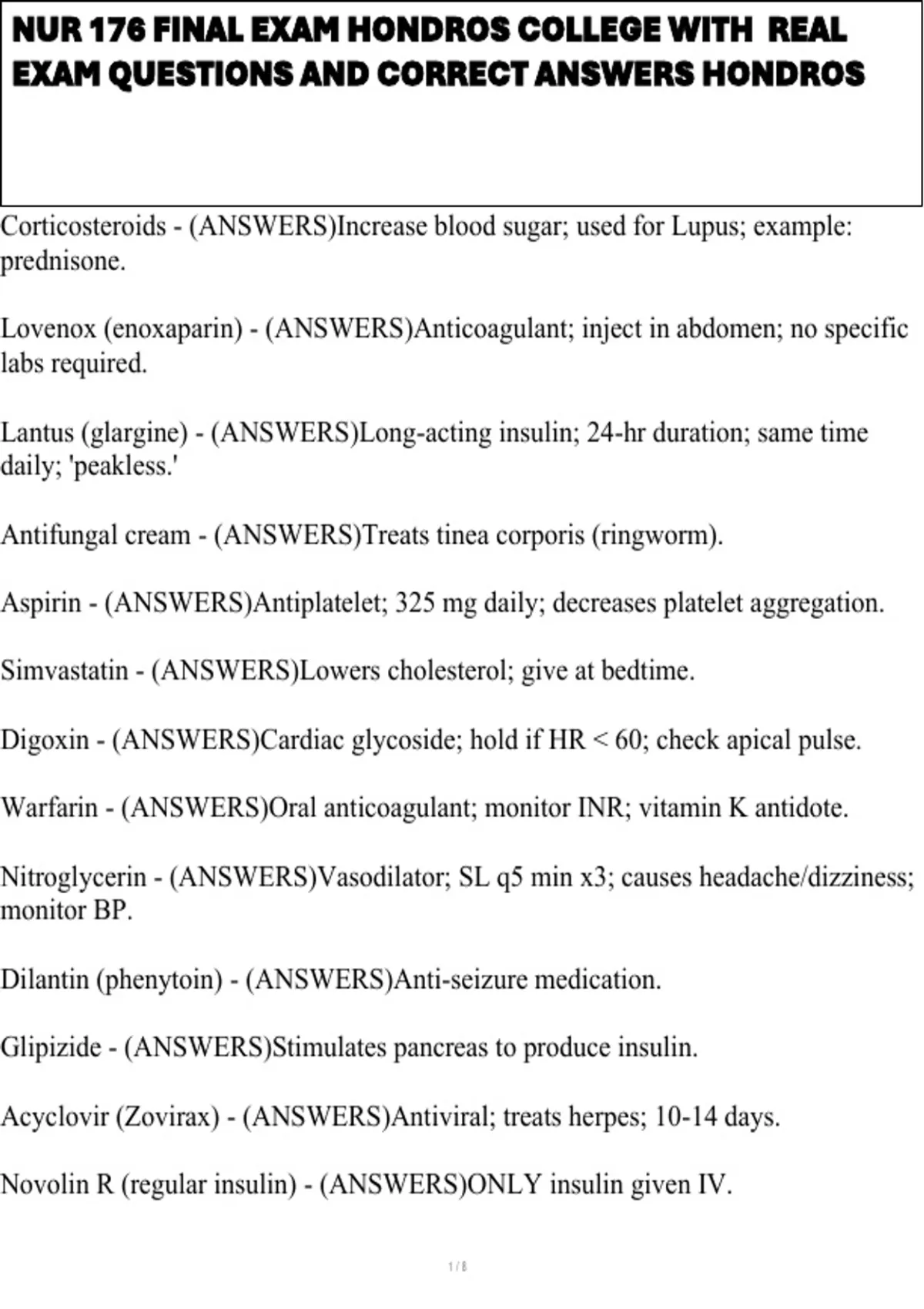 , NUR 176 FINAL EXAM HONDROS COLLEGE WITH REAL