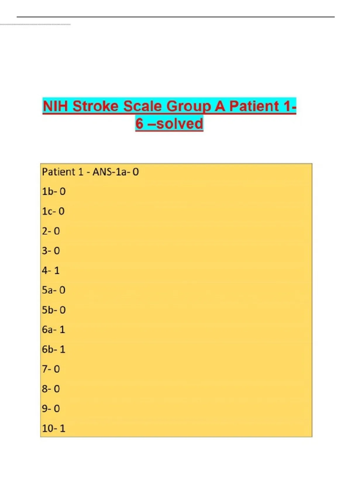 NIH Stroke Scale Group A Patient 1-6 –solved