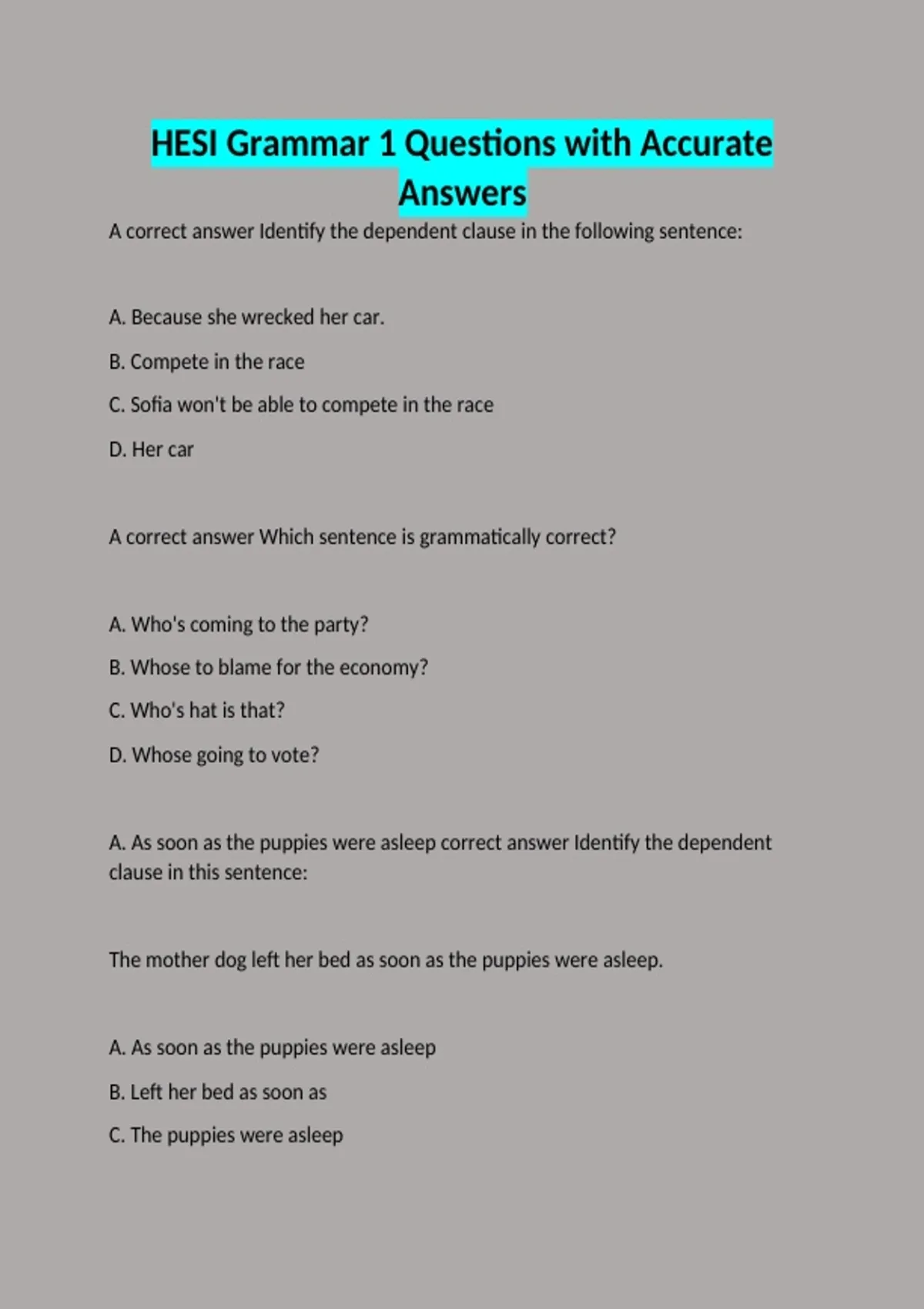 A. Having correct answer Select the word or phrase in the sentence that is not