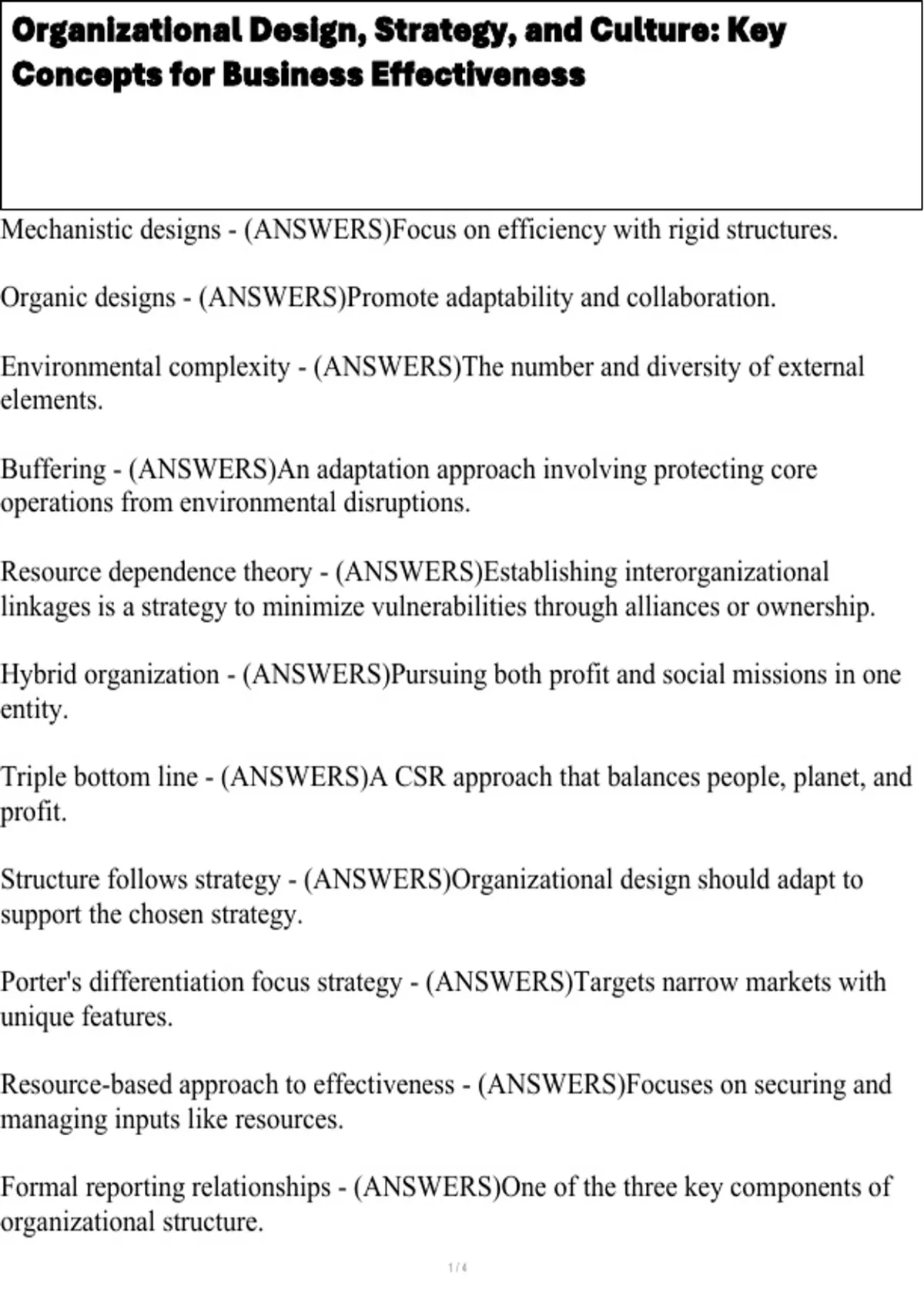 Structure follows strategy - (ANSWERS)Organizational design should adapt to