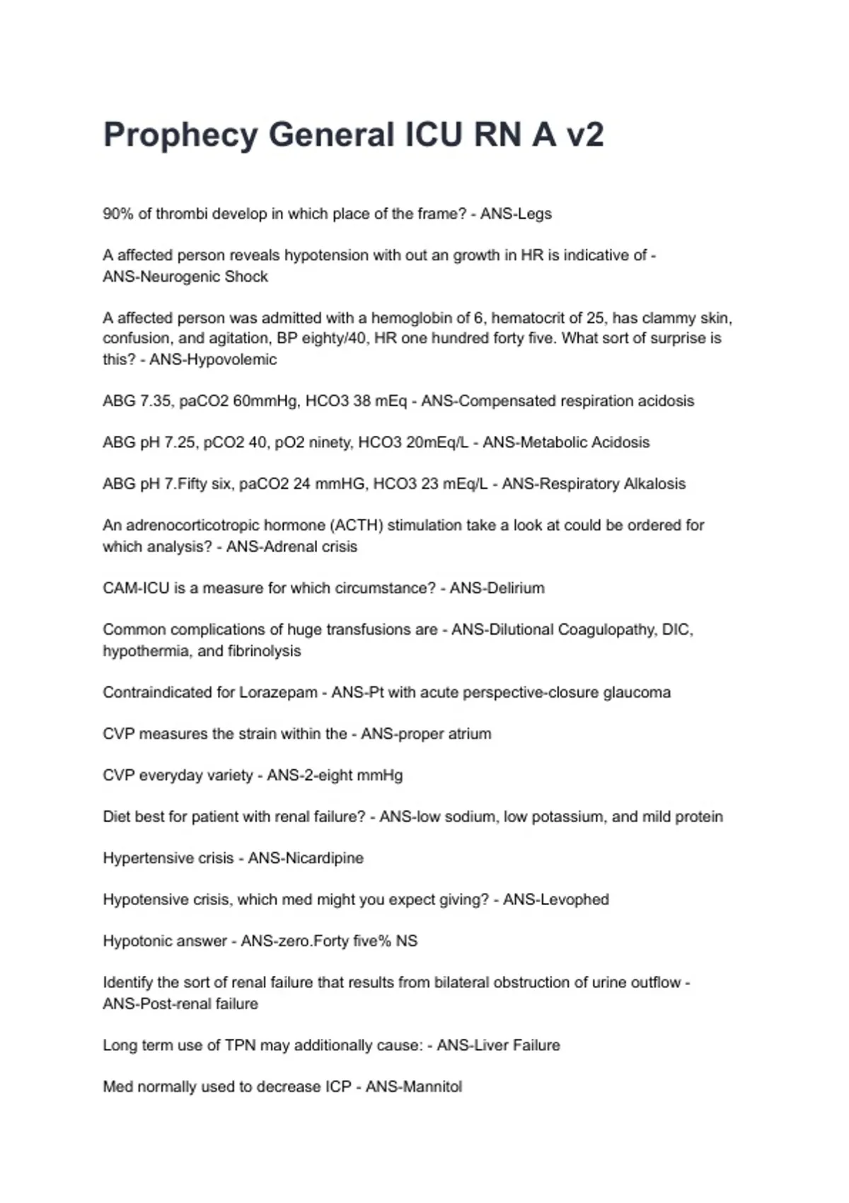 Prophecy General ICU RN A v2 NEWEST 2026/2027 ACTUAL EXAM COMPLETE QUESTIONS AND CORRECT DETAILED ANSWERS (VERIFIED ANSWERS) |ALREADY GRADED A+||BRAND NEW!!