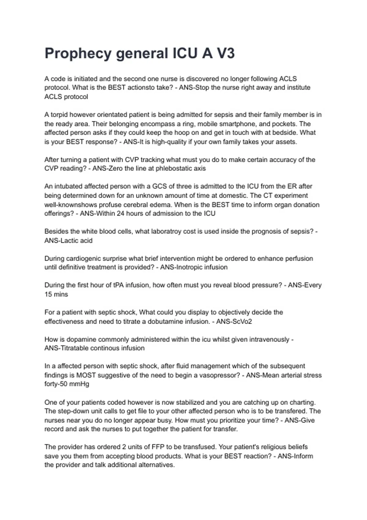 Prophecy general ICU A V3 NEWEST 2026/2027 ACTUAL EXAM COMPLETE QUESTIONS AND CORRECT DETAILED ANSWERS (VERIFIED ANSWERS) |ALREADY GRADED A+||BRAND NEW!!